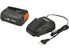 Dette startsæt består afGARDENA hurtigoplader AL 1830 CV og en 2,5Ah POWER FOR ALL-batterier.Batteriet erfuldt opladet inden for 60 minutter.