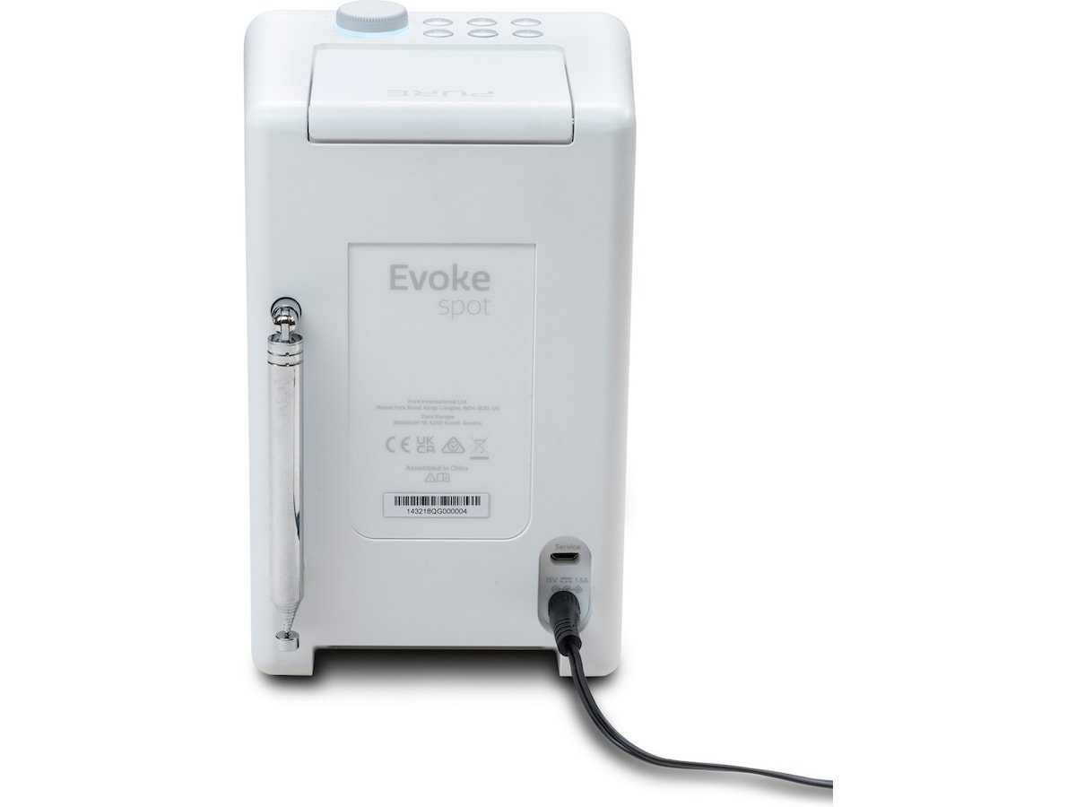 Som en smart radio kombinerer Evoke Spot analog radio (FM), digital radio (DAB) og internetforbindelse for en mere robust og pålidelig lytteoplevelse.