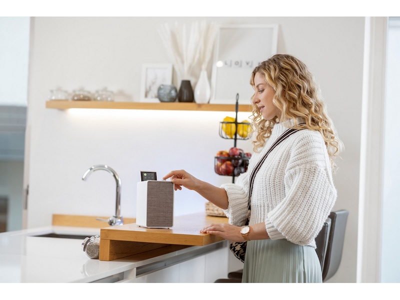 Den oplyste volumenkontrol giver yderligere visuel feedback, selv når displayet er lukket. Ved hjælp af UNDOK-appen kan dit musiksystem styres fra din smartphone. UNDOK er tilgængelig i AppStore eller Google Play Store. Dette gør betjeningen intuitiv og nem for alle i husstanden.