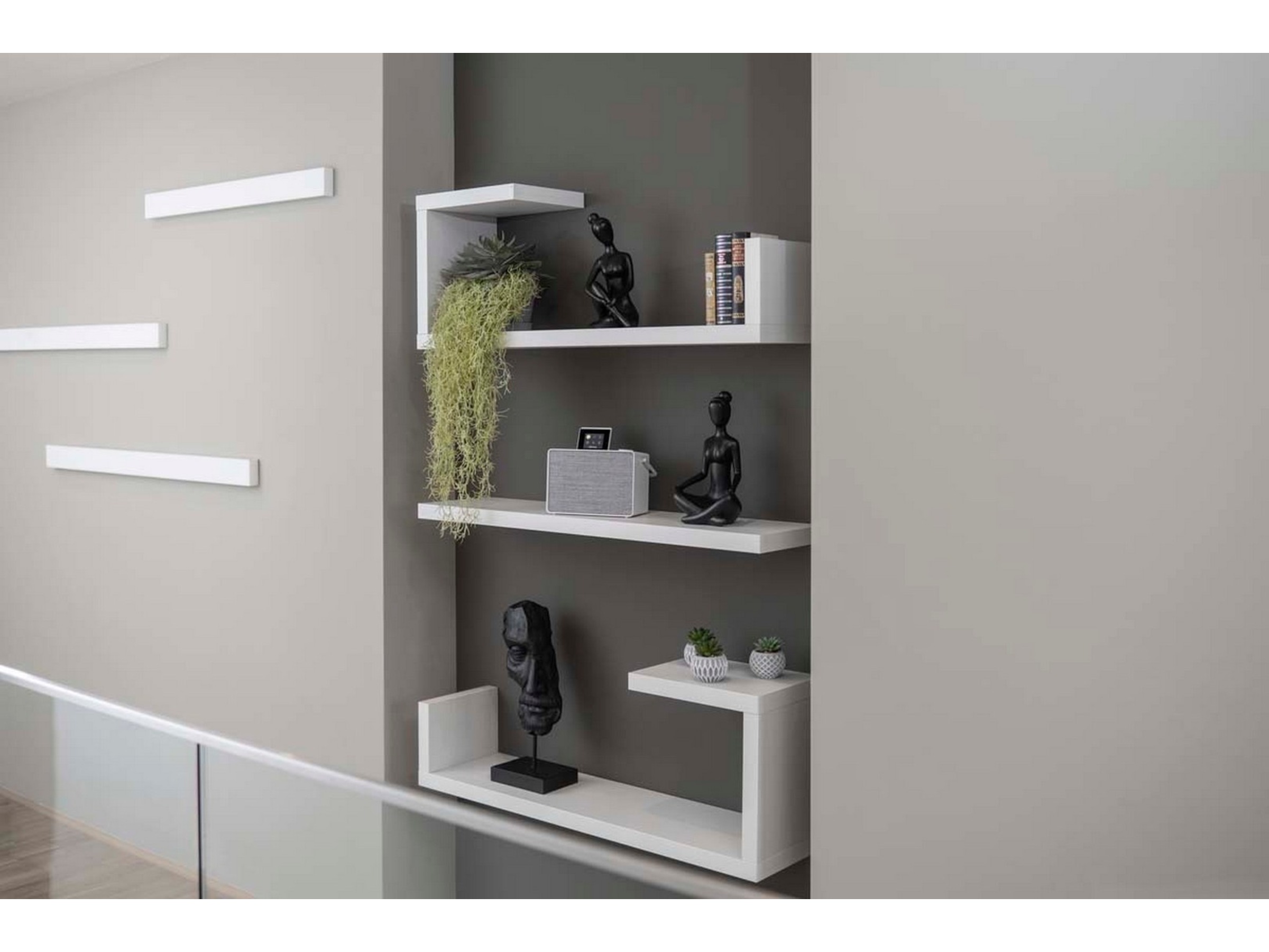Komplekse funktioner såsom vækkeur, timer eller skift af lydkilde er indeholdt i det foldbare display for at spare plads. Hverdagsfunktioner er let tilgængelige på overfladen af Evoke Play.