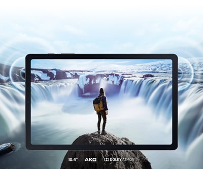 Den smalle ramme giver plads til en stor skærm på 10,4 tommer i en kompakt og praktisk tablet. Det betyder, at du kan nyde at se film og serier, uanset hvor du er, suppleret med den fyldige og detaljerede 3D-lyd.