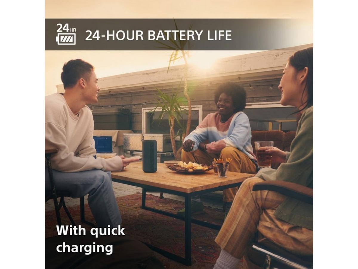 Derudover kan du med 24 timers batteritid og hurtig opladning (10 minutters opladning giver 70 minutters afspilning) holde festen i gang hele dagen og natten.