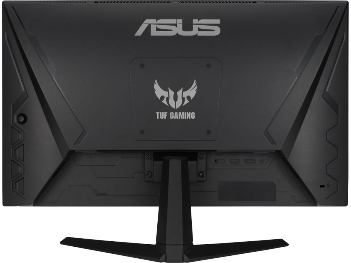 TUF Gaming VG249Q1A har et design inspireret af en stealth fighter, der giver den et dynamisk, futuristisk udseende. Bagpanelet har vingelignende elementer, der giver det en fornemmelse af fart. Et elegant, minimalistisk stativ sikrer stabilitet og et strejf af elegance.