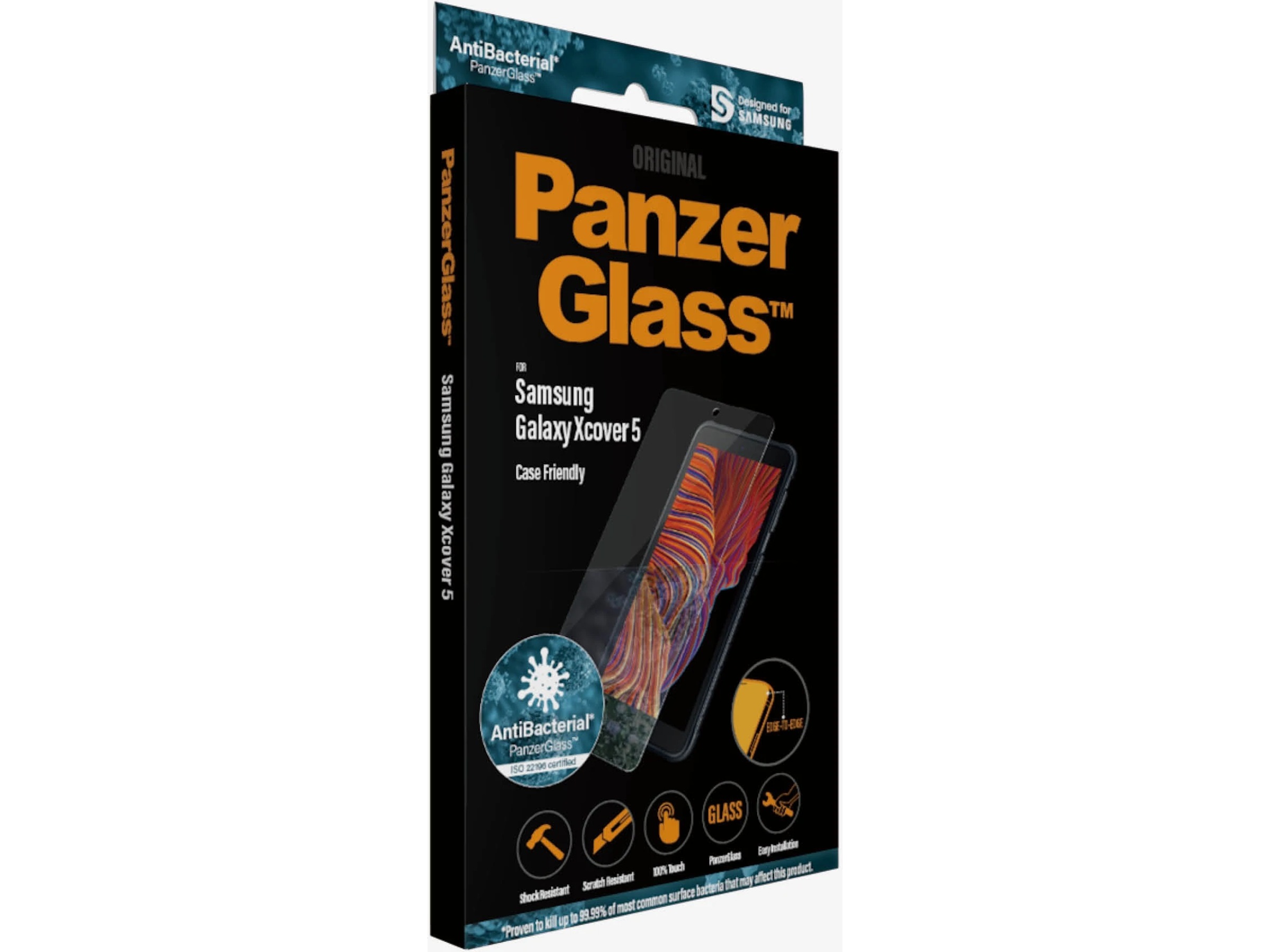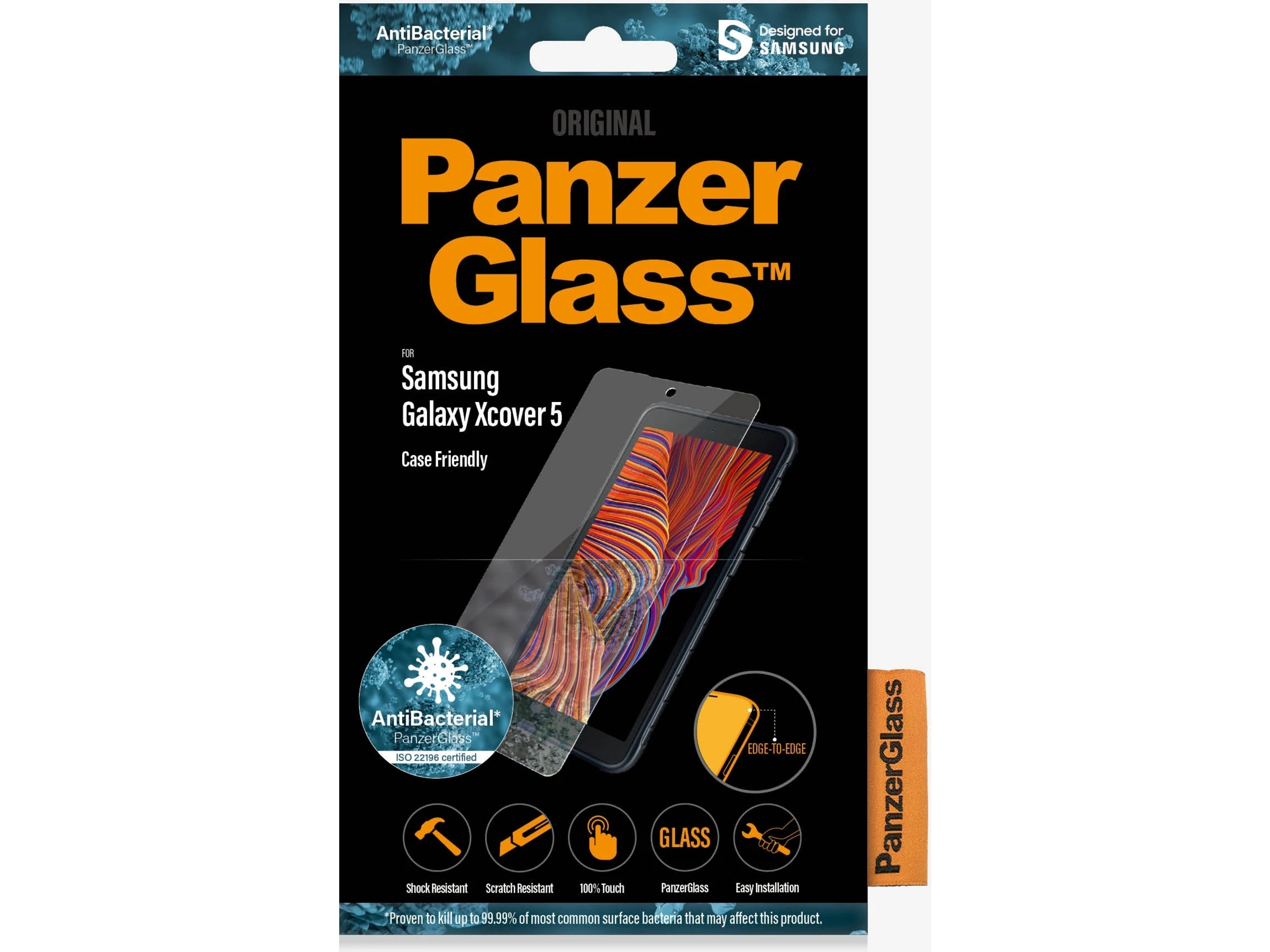 PanzerGlass antibakteriel skærmbeskytter til Samsung Galaxy Xcover 5 har de samme funktioner som det originale PanzerGlass og vil beskytte din skærm mod ridser og stød.