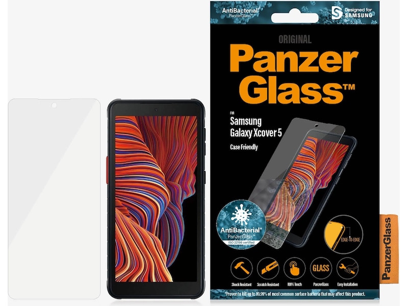 PanzerGlass antibakteriel skærmbeskytter til Samsung Galaxy Xcover 5 har de samme funktioner som det originale PanzerGlass og vil beskytte din skærm mod ridser og stød.