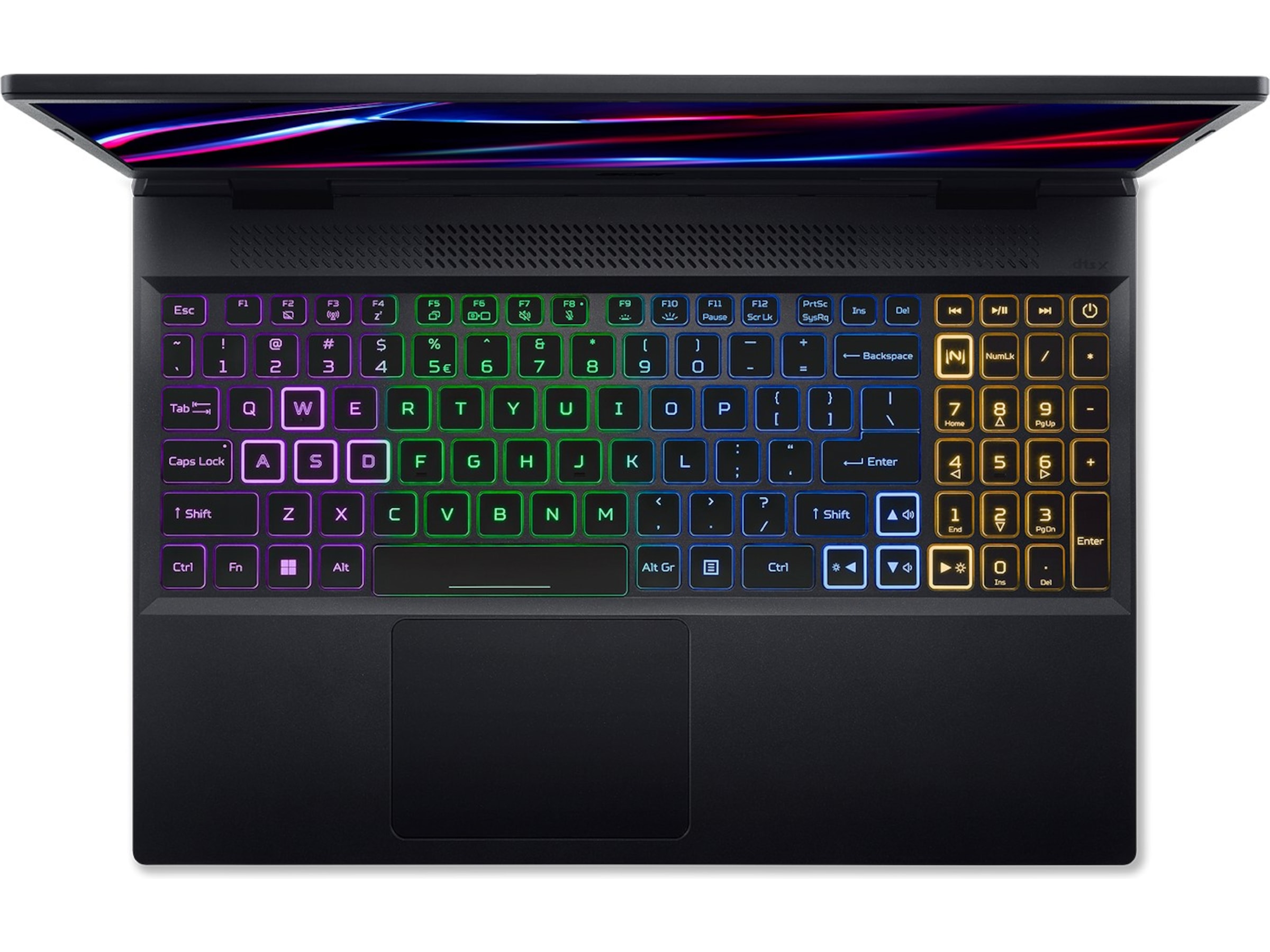 Pift tingene op med det 4-zoners RGB-tastatur, og tag kommandoen over den bærbare computers indre funktioner via den dedikerede NitroSense Kay. WASD og piletasterne er også fremhævet, så disse koblingsmomenter let kan ses.