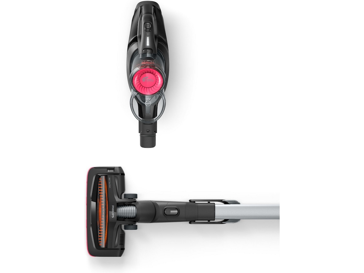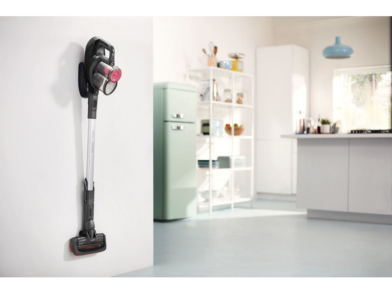 Den nye trådløse SpeedPro-støvsuger gør hurtigt rent og har en bred vifte. Den er udstyret med en 180° dyse, der præcist absorberer støv, selv i vanskelige områder, nær vægge, møbler og i hjørner.