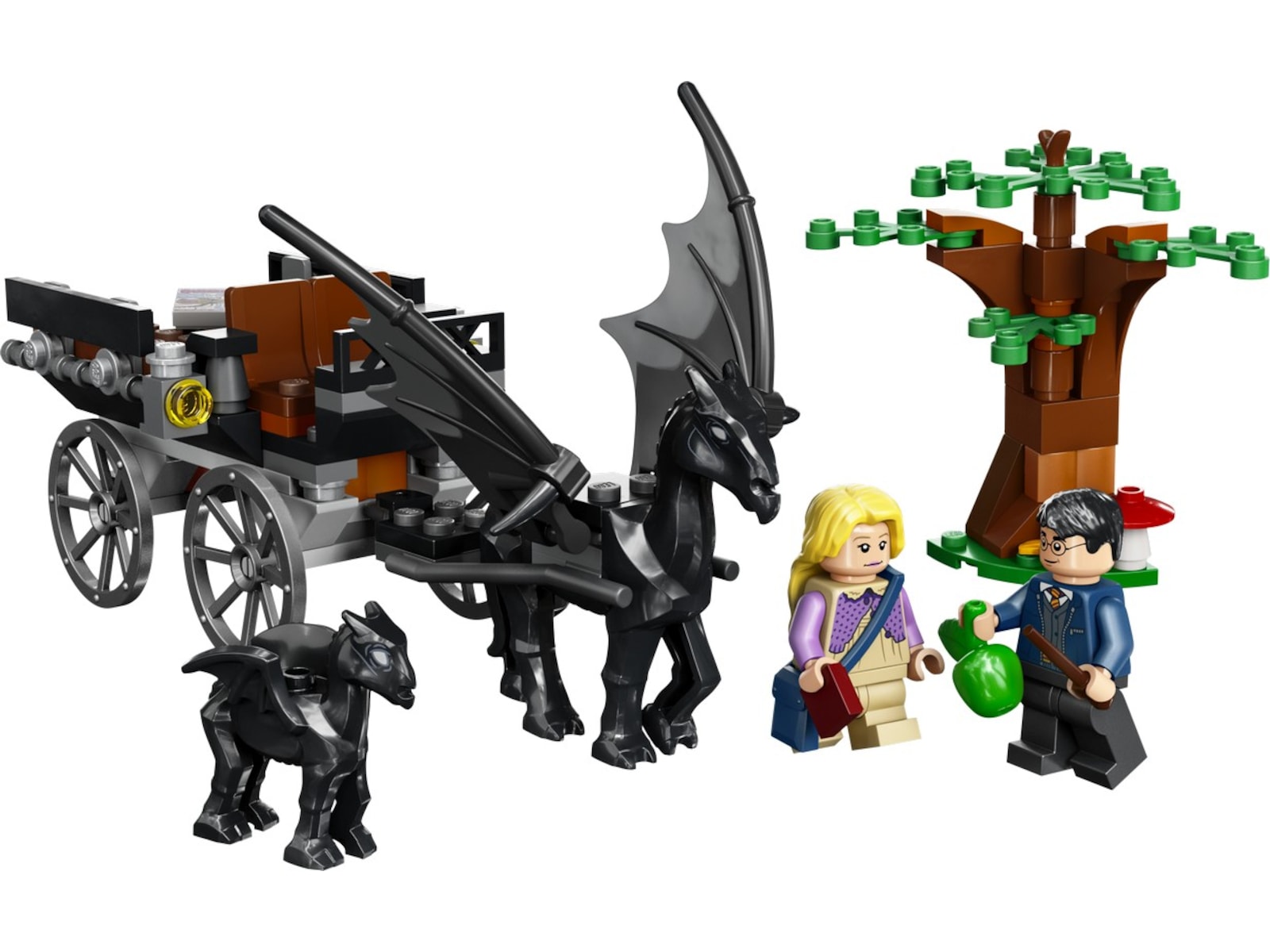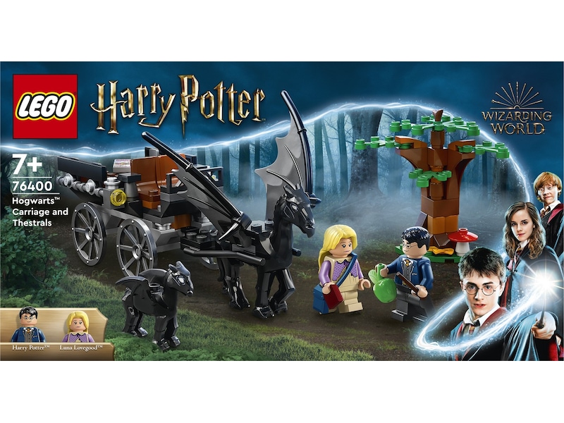 • Ikoniske figurer – Indeholder minifigurer af Harry Potter™ og Luna Lovegood™, en voksen thestral og dens unge samt en vogn, der kan bygges, som kan spændes til den voksne thestral