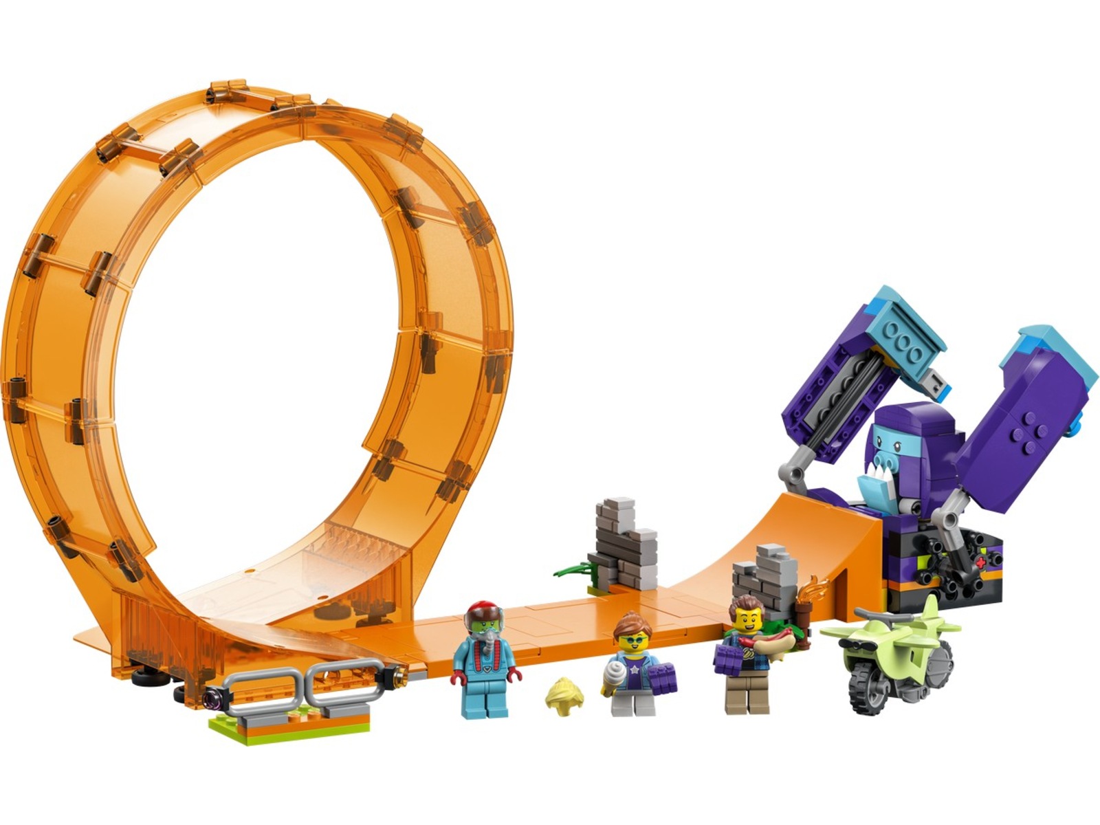 Aktivér din svinghjulsdrevne motorcykel, og kør hen til det seje LEGO® City Smadrende chimpanse-stuntloop. Tag med en højtflyvende LEGO City Stuntz-figur på den cool, bevingede motorcykel. Ram loopet i topfart, trods tyngdekraften, og drøn op ad rampen! Kan du flyve over den mekaniske chimpanse, eller ødelægger den murene med sine kraftige arme? Forbered dig på "smadrende" ægte stuntaction!
