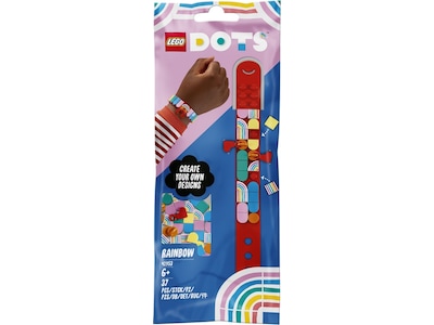 • Design, brug, del – Forkæl en fan af regnbuer med det kreative og sjove LEGO® DOTS sæt Regnbuearmbånd med vedhæng (41953). Legen starter, så snart posen åbnes