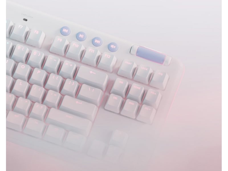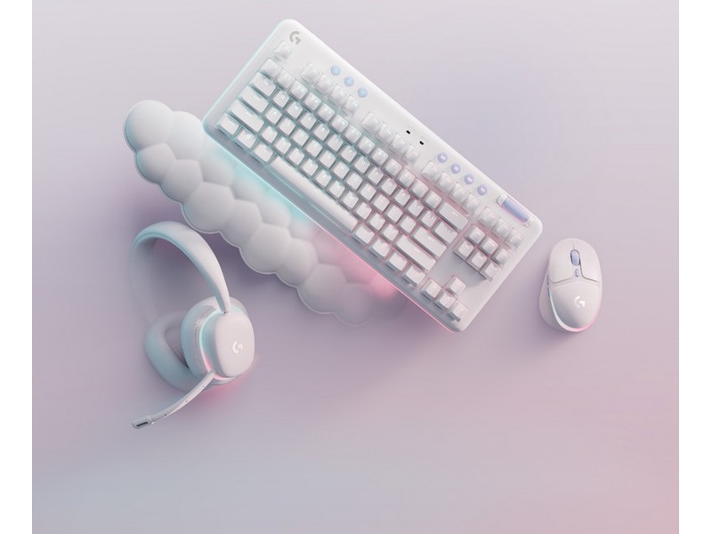 G715 Wireless Gaming Keyboard er en del af Aurorakollektionen og er et kompakt, behageligt tastatur med lavt tastetryk og høj ydeevne, så du kan udtrykke dig selv og spille på din måde. Svæv ud med det drømmende smukke White Mist design og den skyformede bløde håndledsstøtte. Et kompakt layout uden numerisk tastatur og en justerbar højde giver dig en god spilfornemmelse hele dagen lang.