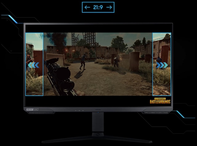 Hold snuden i vindersporet. Juster din skærm til 21:9 for at se de skjulte områder i spilscenerne med Ultrawide Game View. Når du spiller fodboldspil, kan du se mere af banen helt op til målstolperne. Og i bilspil får du et naturligt og altomsluttende udsyn over vejen foran dig.