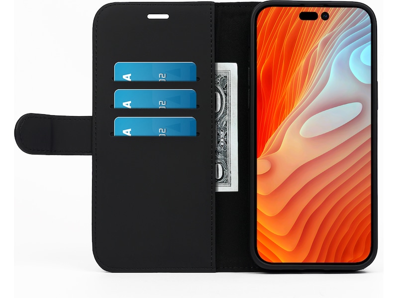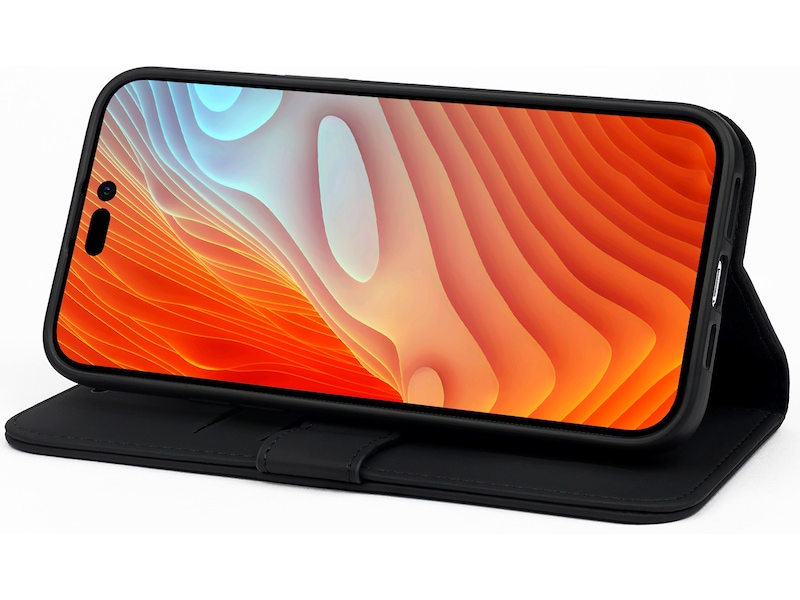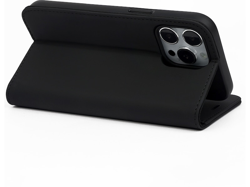 Etuiet er meget let og giver god holdekomfort, når du bruger din iPhone. Fronten kan foldes til et stativ, så du kan se film eller deltage i videomøder i en perfekt vinkel! Etuiet har en lomme til tre kort. Selv med praktiske løsninger er der ikke gået på kompromis med designet, som er sort, enkelt og stilfuldt.
