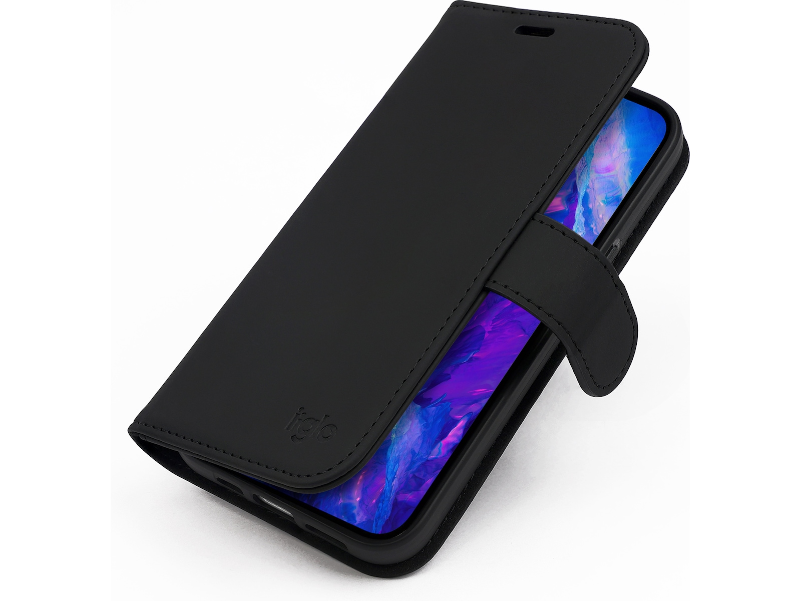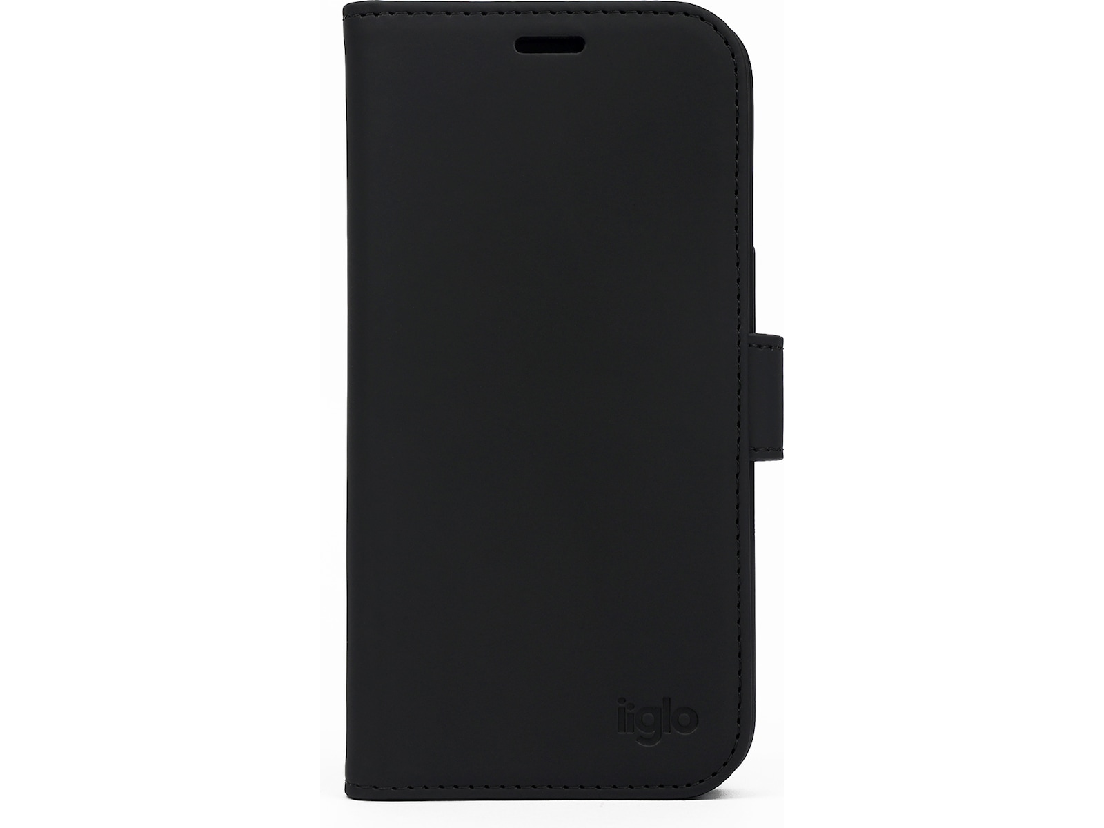 Beskyt din iPhone med iiglo iPhone-tegnebogsetui i sort design Dette etui er lavet af førsteklasses PU-læder, der er et blødt og slidstærkt materiale. Etuiet beskytter mod stød og ridser. Den magnetiske strop sikrer, at etuiet lukkes, selv når telefonen er i jakkelommen eller PC-tasken.