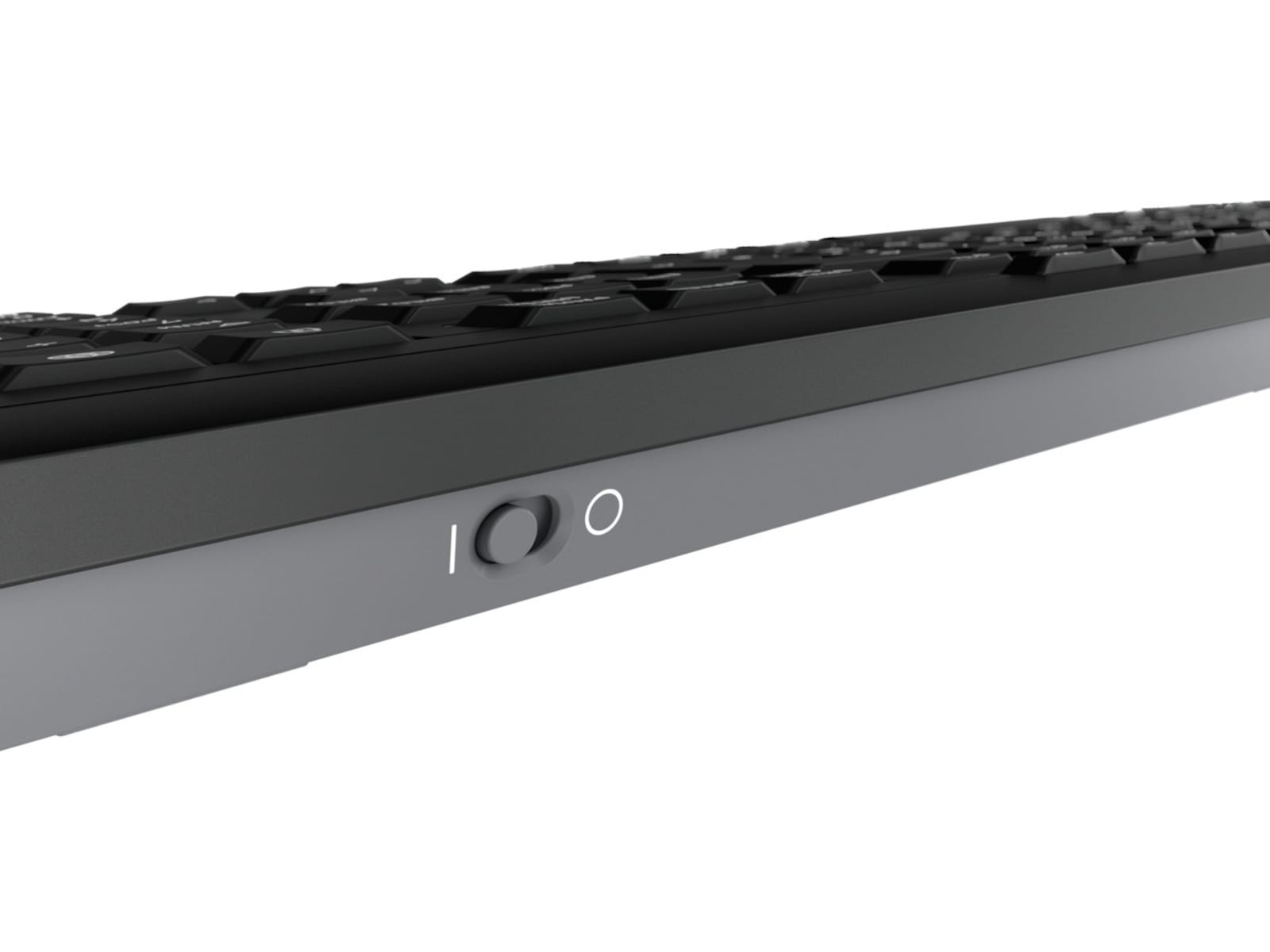 Det trådløse tastatur med trådløs 2,4-teknologi og AES-128-kryptering gør irriterende søgning efter tasterne til noget, der hører fortiden til. Det har et layout i fuld størrelse og et numerisk tastatur, som straks gør betjeningen kendt. Stauts LED'er til CAPS LOCK, NUM og SCROLL LOCK er nyttige, da de er integreret direkte i tasten, hvilket med et enkelt øjekast viser, hvilken status-LED der er aktiveret. Denne funktion findes oftere på produkter til højere prisniveauer. Et kommende batteriskift indikeres også tydeligt i god tid ved, at LED'erne blinker. Den lange batterilevetid på 36 måneder sikrer dog, at dette er en sjælden begivenhed.