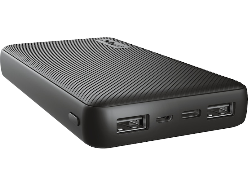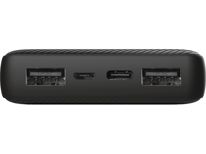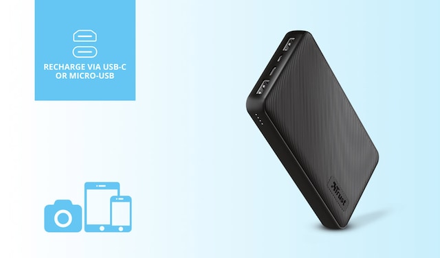 - Genoplad powerbanken hurtigt med det inkluderede mikro-USB-kabel eller USB-C-port