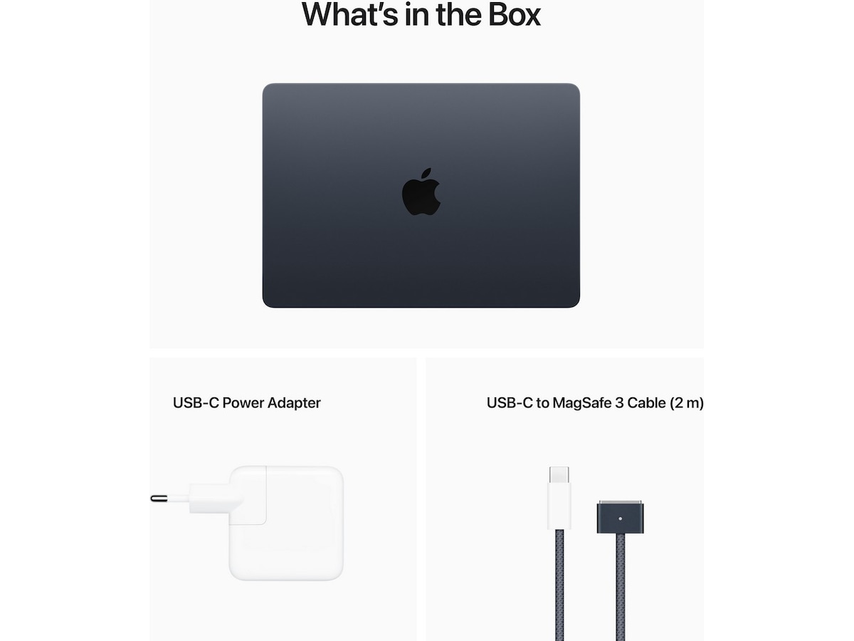 | Inkluderet tilbehør | USB-C til MagSafe 3 opladerkabel, USB-C dobbeltport kompakt strømadapter |