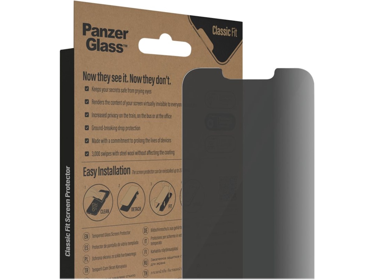 PanzerGlass™ skærmbeskytter med Privacy har de samme kernefordele som det originale glas, samtidig med at det beskytter indholdet af skærmen. Et fortrolighedsfilter gør indholdet af skærmen næsten usynligt for alle undtagen brugeren af enheden. Samtidig reducerer den eksponering for blåt lys og har en antirefleksbelægning, der reducerer lysrefleksioner, der når dine øjne uden at påvirke skærmens synlighed.