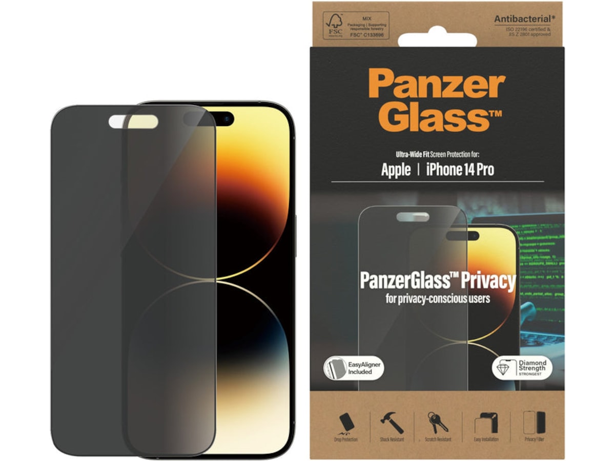 PanzerGlass™ skærmbeskytter med Privacy har de samme kernefordele som det originale glas, samtidig med at det beskytter indholdet af skærmen. Et fortrolighedsfilter gør indholdet af skærmen næsten usynligt for alle undtagen brugeren af enheden. Samtidig reducerer den eksponering for blåt lys og har en antirefleksbelægning, der reducerer lysrefleksioner, der når dine øjne uden at påvirke skærmens synlighed.