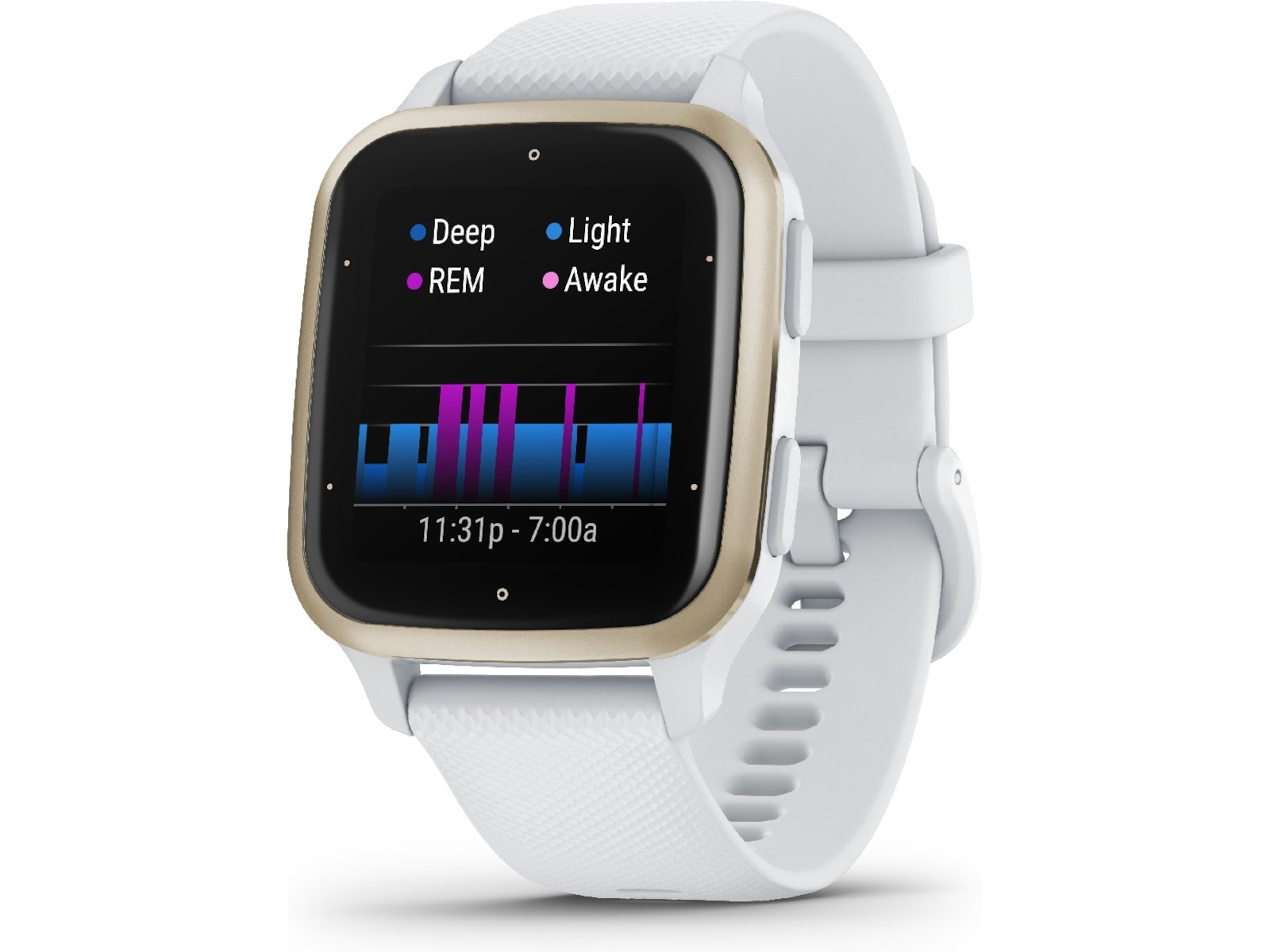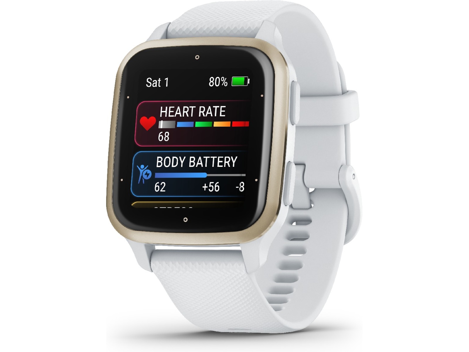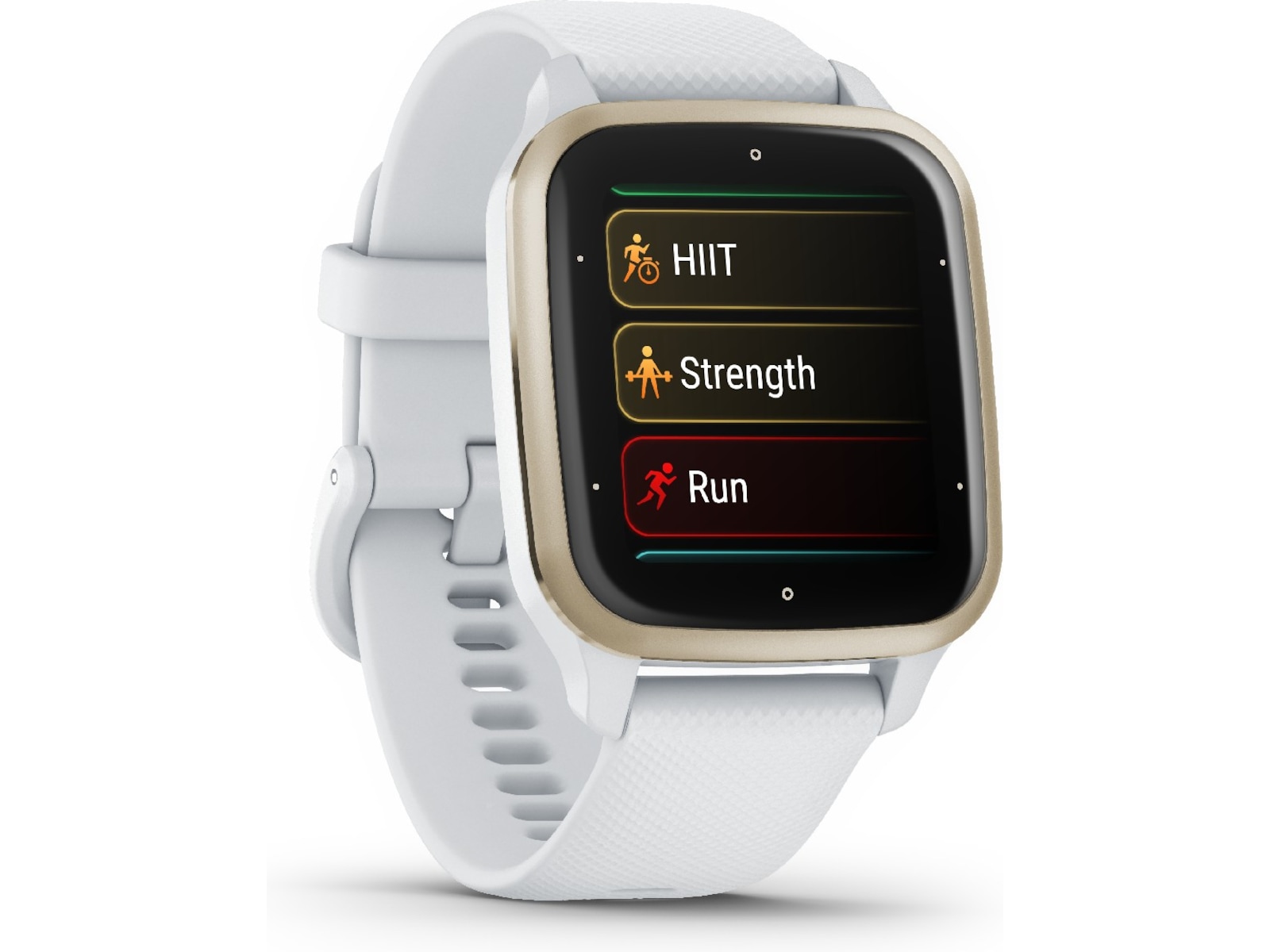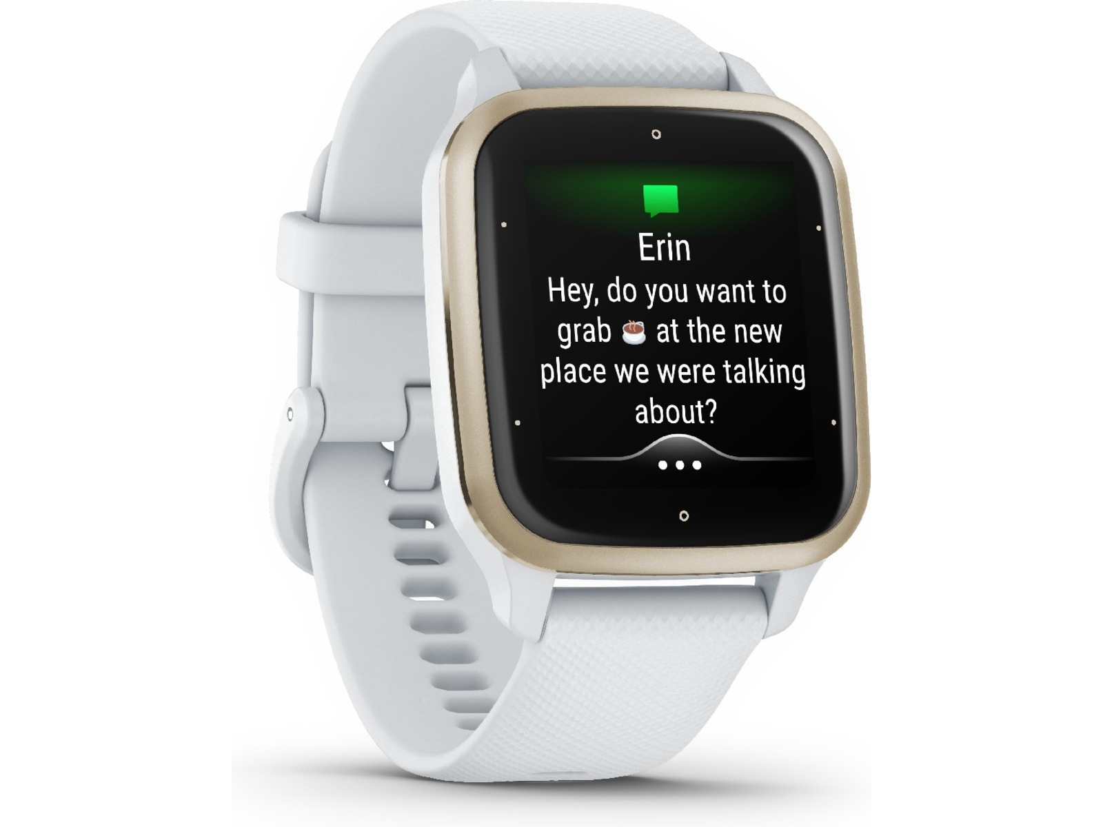 Se alt klart med stor, letlæselig tekst på den lyse AMOLED-skærm med forbedret grafik og en altid tændt tilstand, perfekt til et hurtigt øjekast. Skærmstørrelsen er 17% større end den originale Venu Sq-serie.