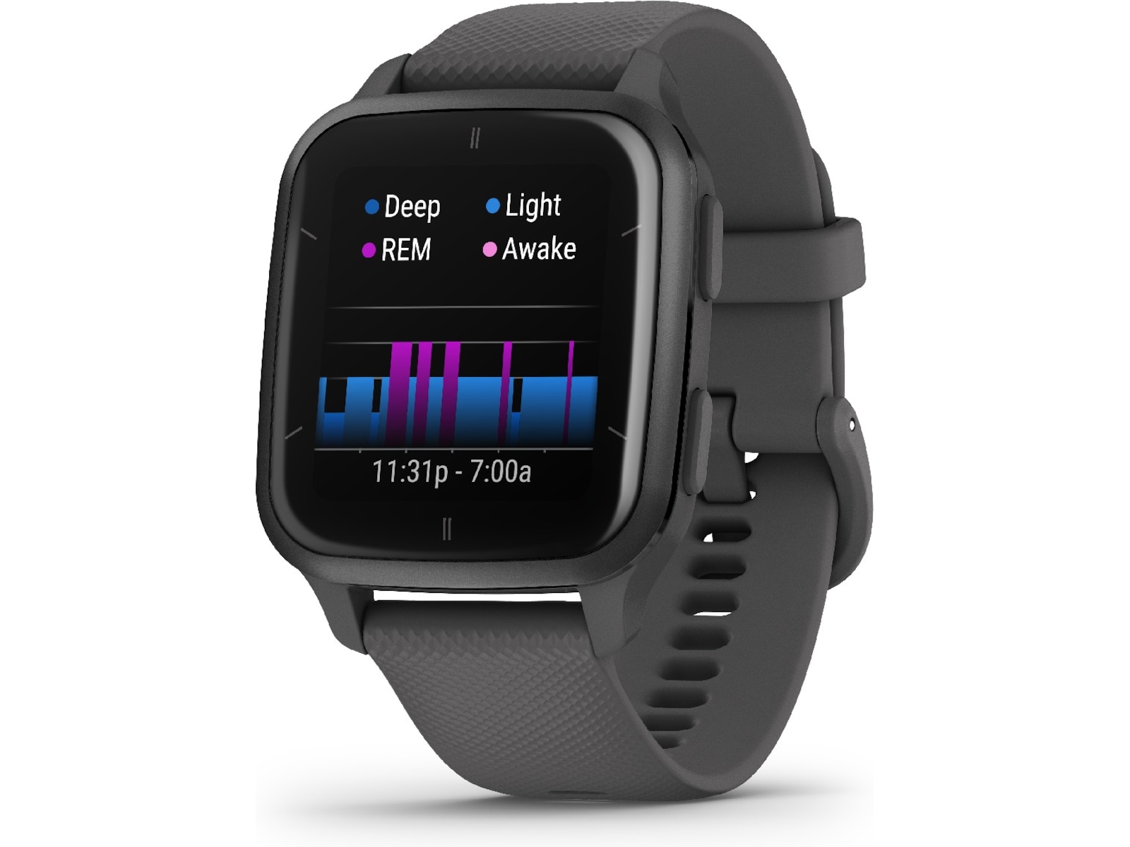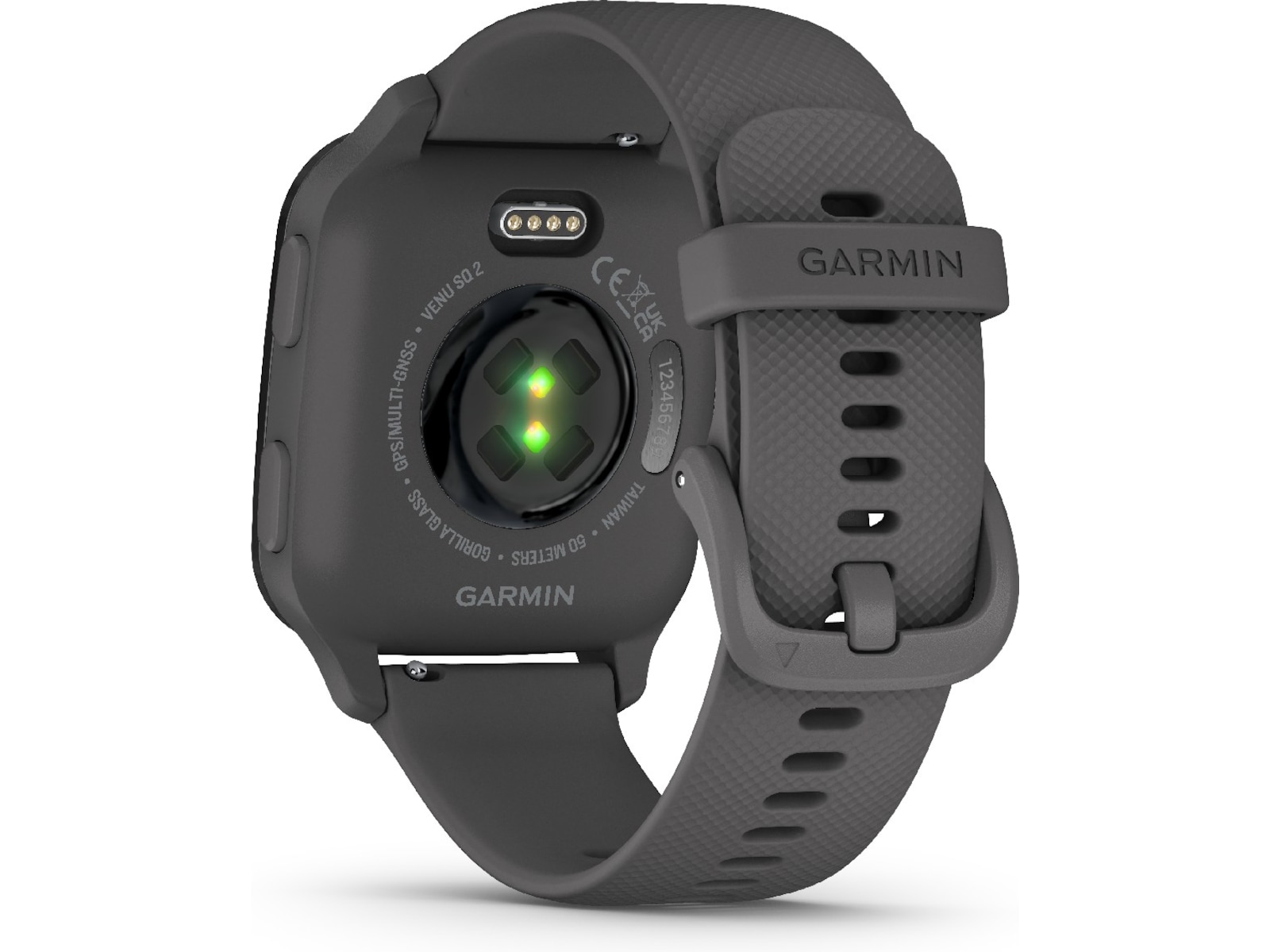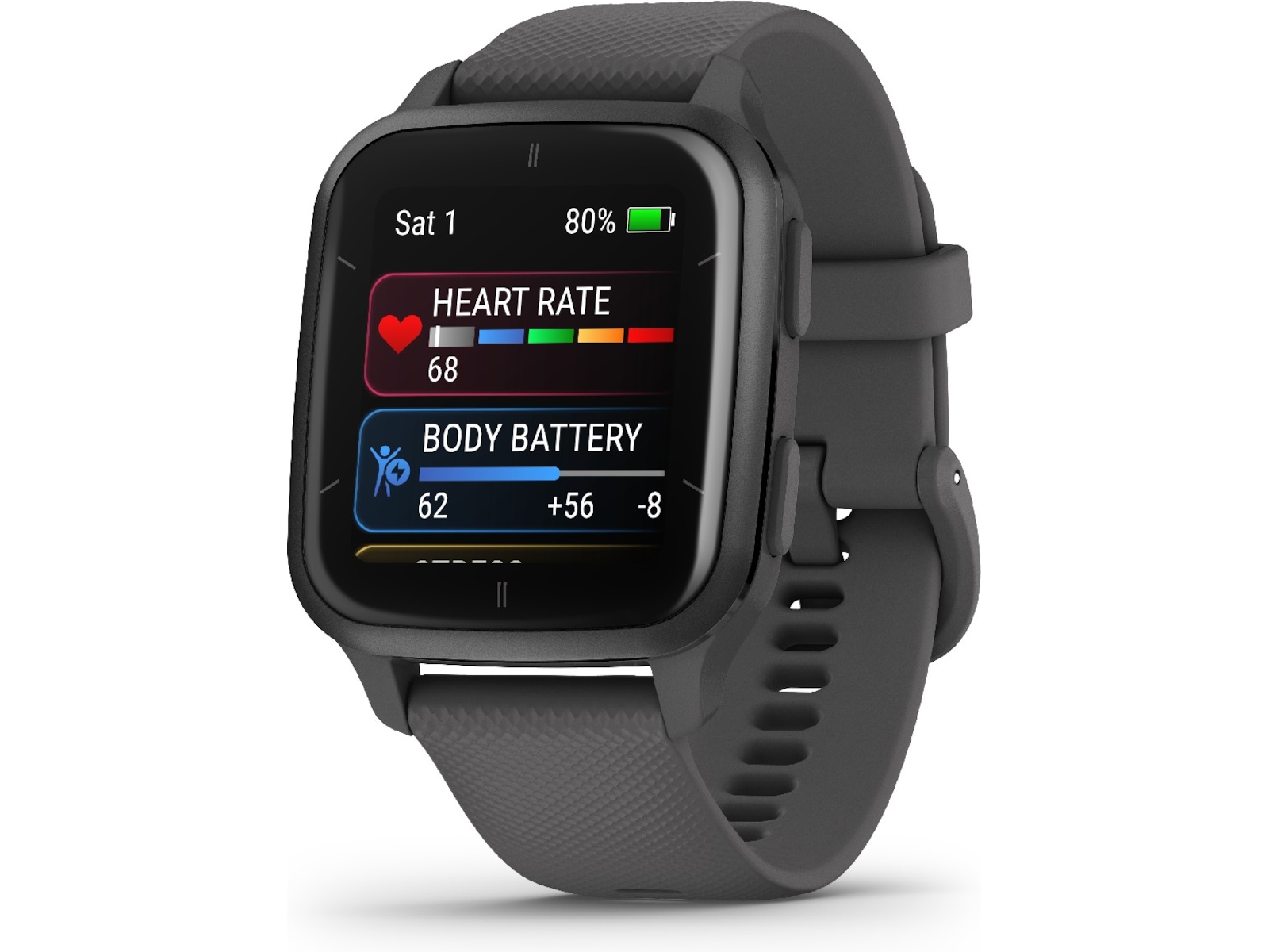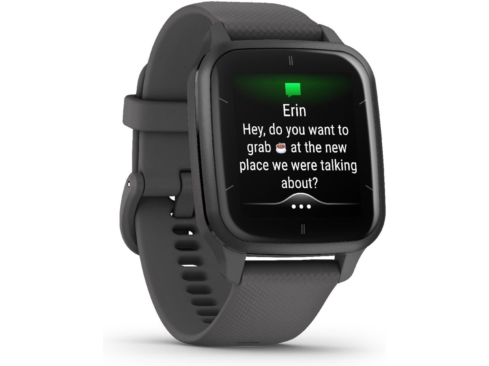 Se alt klart med stor, letlæselig tekst på den lyse AMOLED-skærm med forbedret grafik og en altid tændt tilstand, perfekt til et hurtigt øjekast. Skærmstørrelsen er 17% større end den originale Venu Sq-serie.