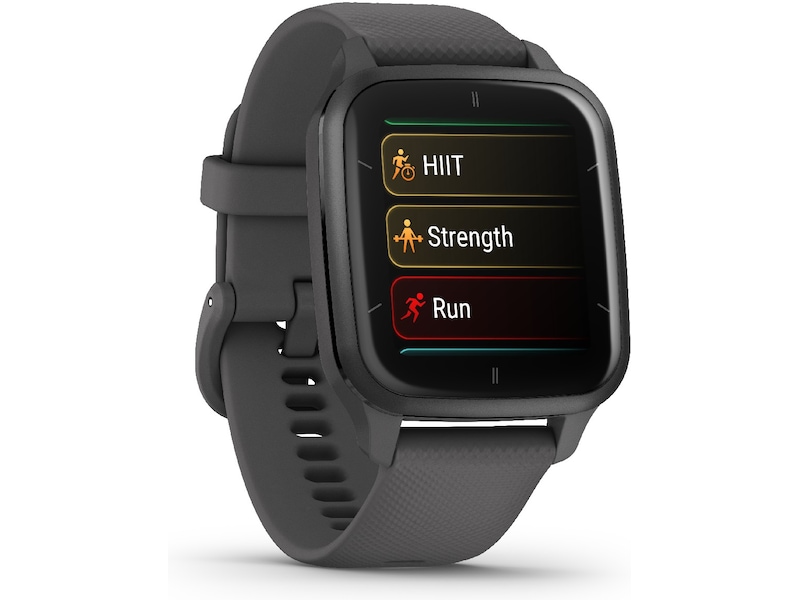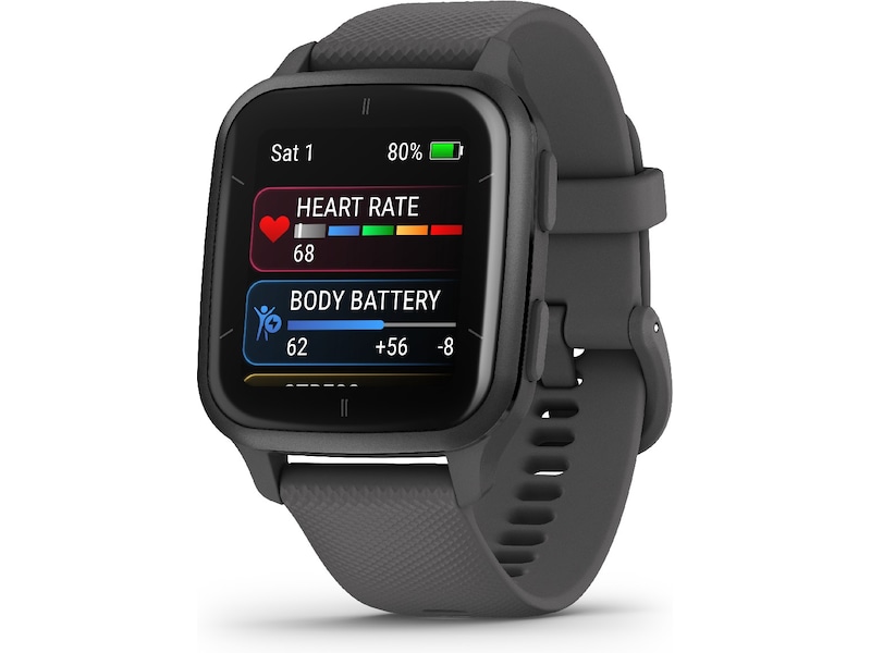 Se alt klart med stor, letlæselig tekst på den lyse AMOLED-skærm med forbedret grafik og en altid tændt tilstand, perfekt til et hurtigt øjekast. Skærmstørrelsen er 17% større end den originale Venu Sq-serie.