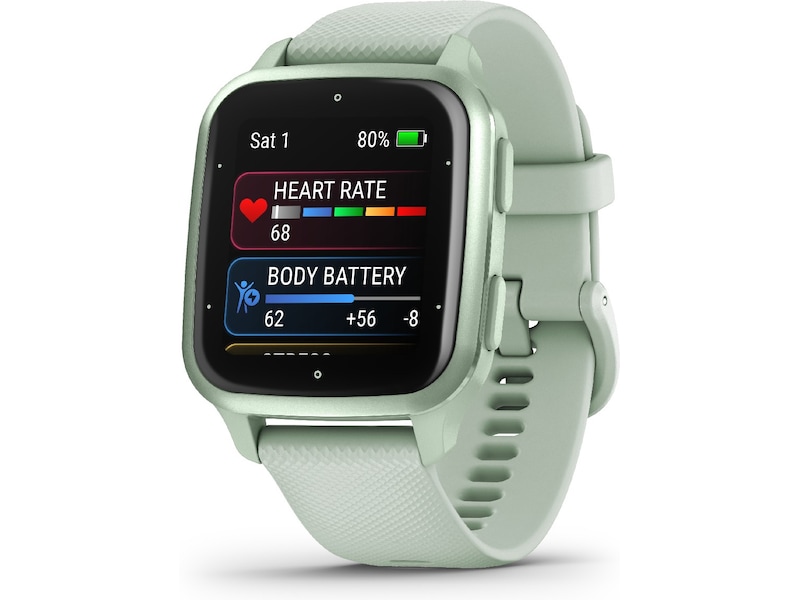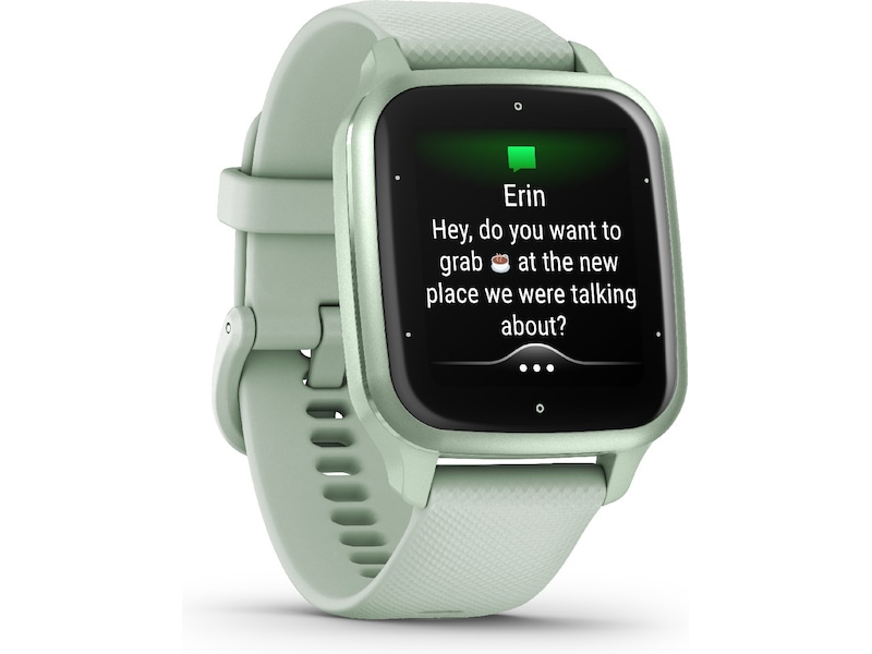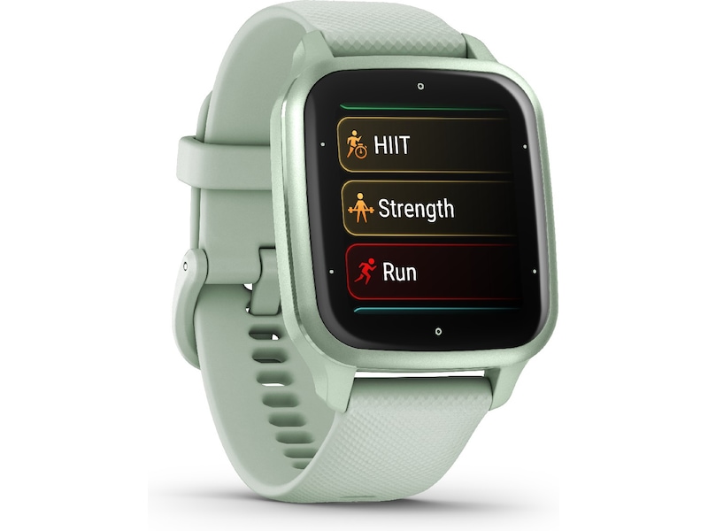 Se alt klart med stor, letlæselig tekst på den lyse AMOLED-skærm med forbedret grafik og en altid tændt tilstand, perfekt til et hurtigt øjekast. Skærmstørrelsen er 17% større end den originale Venu Sq-serie.