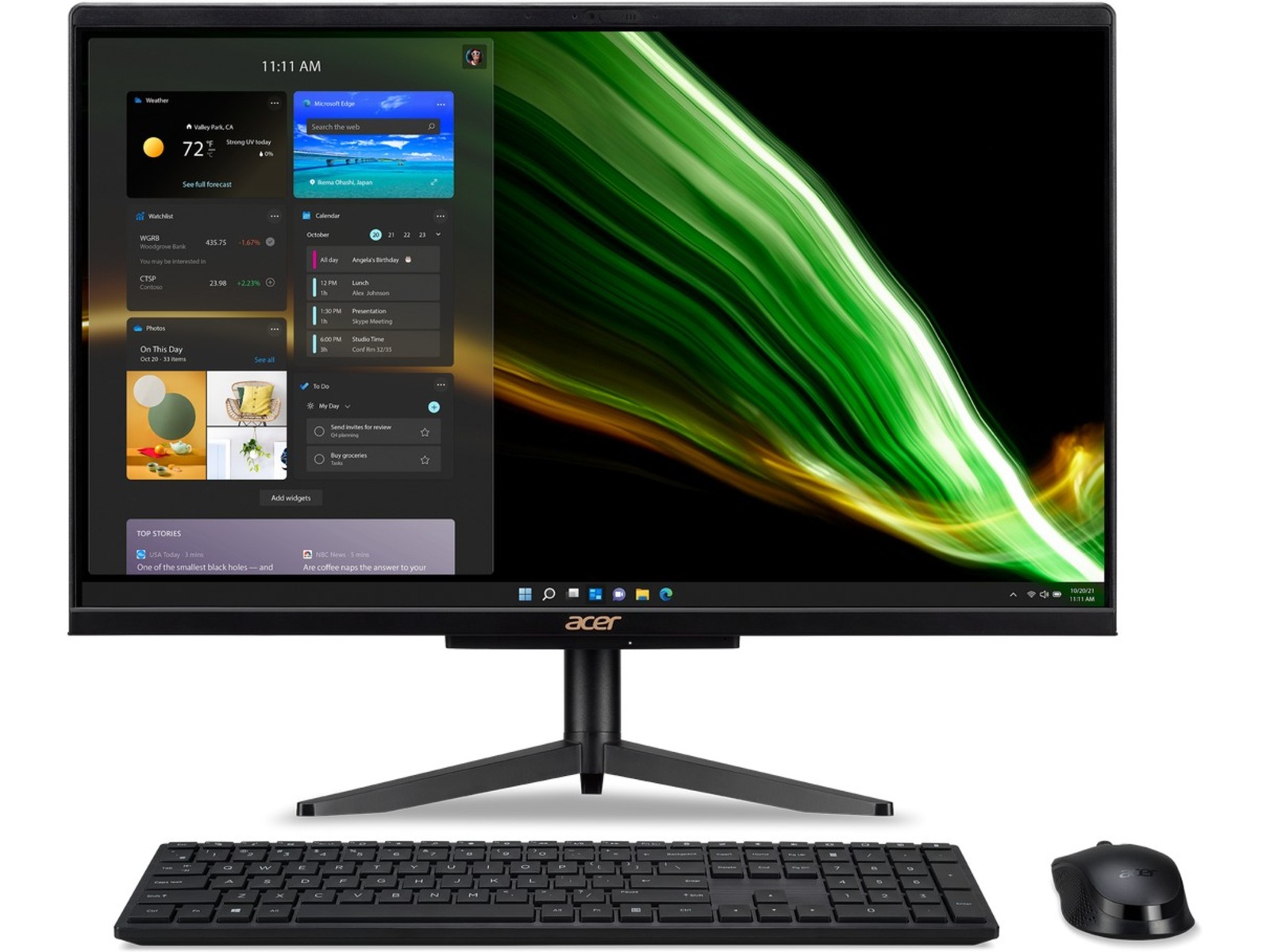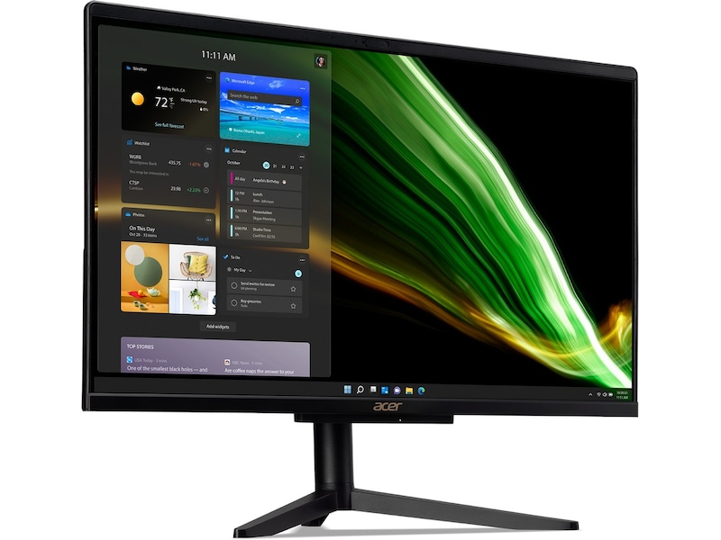 Alt på ét sted. Aspire C24 alt-i-en leverer enestående, pladsbesparende design. Intel® Celeron®-processoren, der er placeret i en ultra-slank ramme, sikrer strømoptimeret arbejde hver dag. Den strålende FHD-skærm og FHD-webkameraet på 1080p leverer skarpe billeder, der er afgørende for nutidens videoopkald.