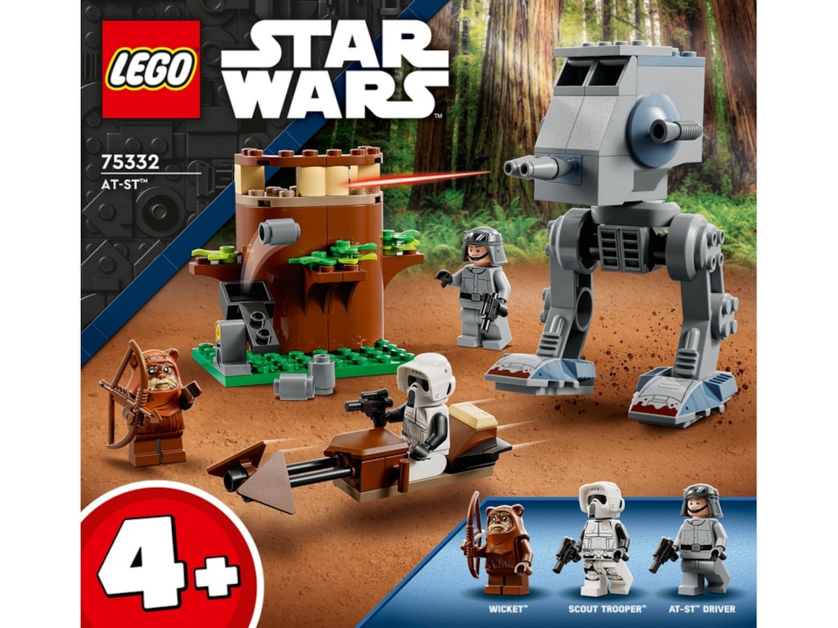 • Bevægelig AT-ST-ganger, speeder og ewok-udkigspost – AT-ST-gangeren har et cockpit til AT-ST-føreren, og ewok-skjulestedet omfatter et træ og en katapult, så Wicket kan affyre stenelementer