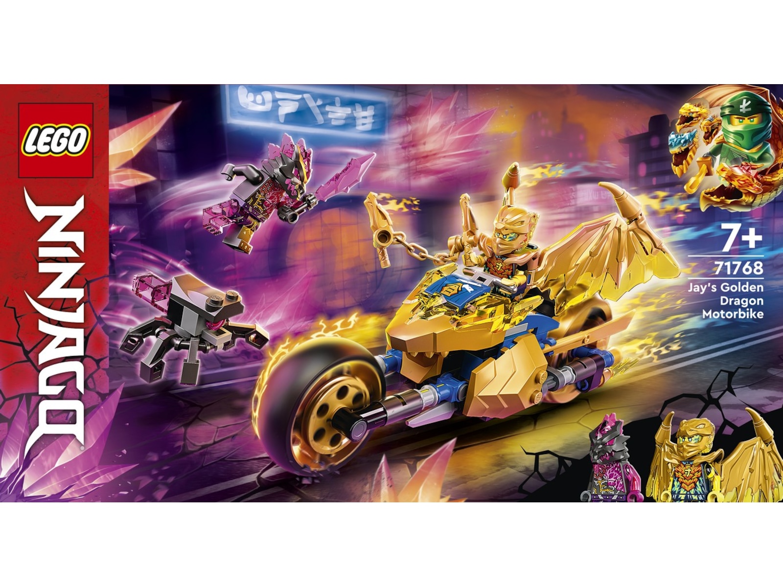 • NINJAGO®-legesæt med motorcykel – Børn kan genskabe spændende scener med racerløb og actionfyldt kamp fra tv-serien NINJAGO: Krystalliseret med LEGO® NINJAGO sættet Jays gyldne drage-motorcykel (71768)
