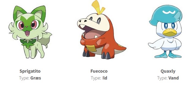 De tre Pokémon, du kan vælge mellem som dine allerførste partnere, er Sprigatito, Fuecoco og Quaxly. Er du ikke nysgerrig efter at se, hvordan du vil møde disse tre Pokémon? Det vil også blive interessant at se deres personligheder.