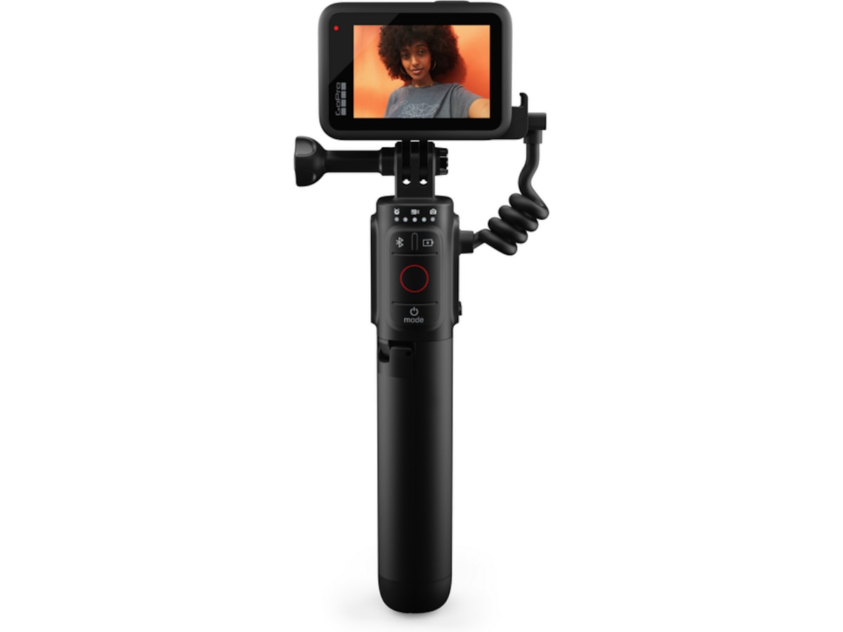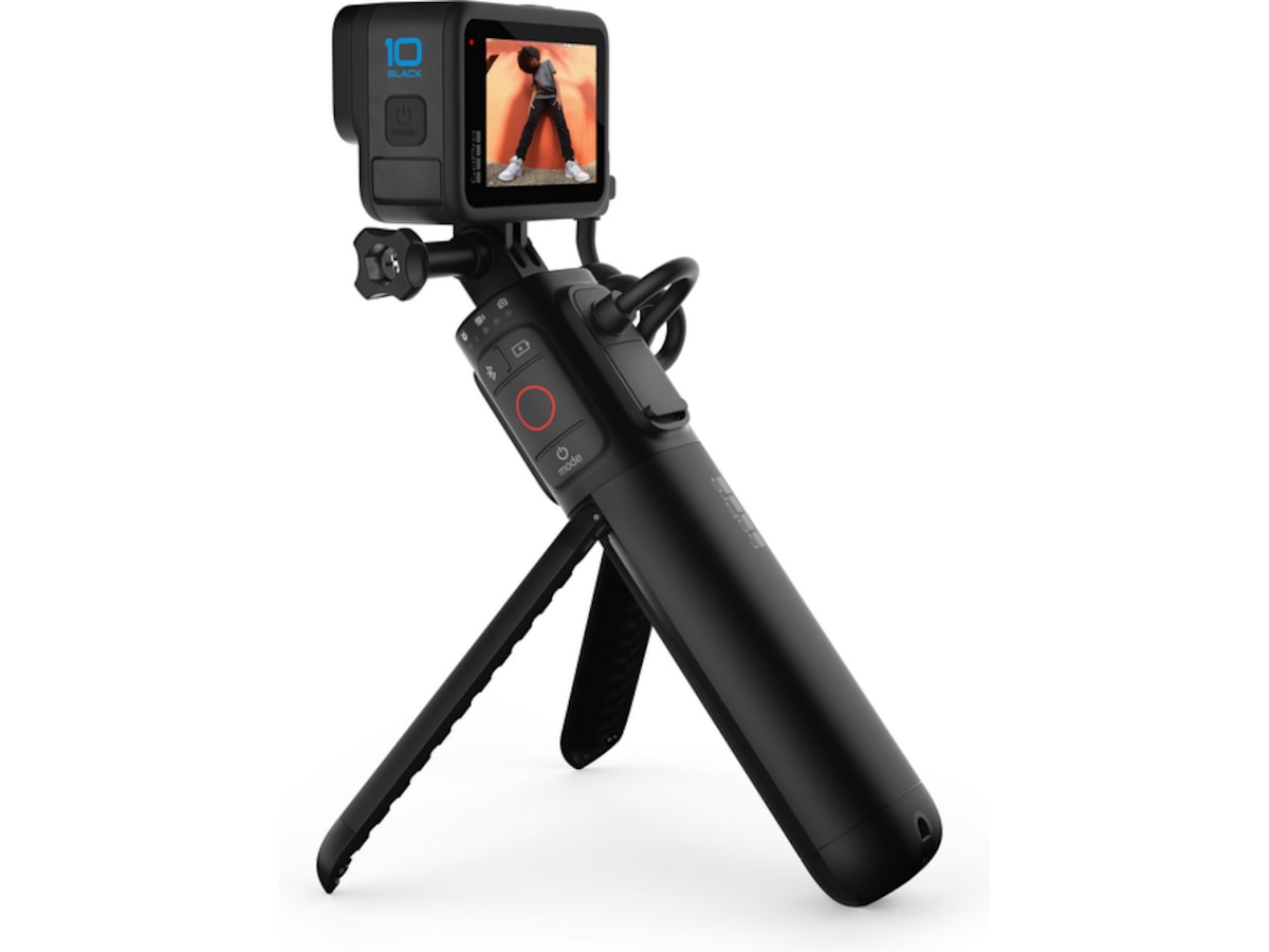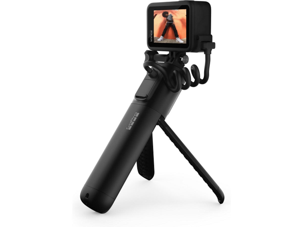 Volta er et førsteklasses batterigreb og så meget mere. Det kombineres med standard GoPro-batteriet til over 4 timers 5,3K-optagelse – i alt 3x den normale driftstid. Det har også indbyggede knapper, så kameraet nemt kan betjenes med en hånd, og det kan også bruges som trådløs kamerafjernbetjening og har foldbare ben, der gør det til et praktisk stativ.