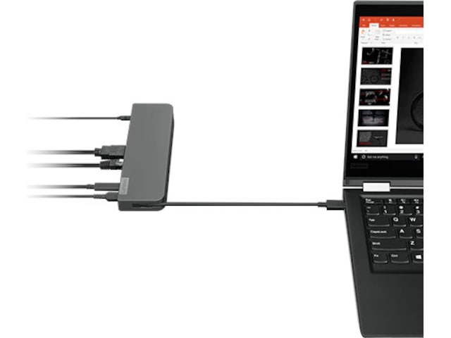 Udvid dit potentiale med en Universal Mini Dock; Lenovo forstår, at moderne virksomheder er afhængige af en lang række PC'er og også brands for at opfylde deres forretningsbehov. For at gøre dette nemmere er Lenovo USB-C Mini-dockingstationen kompatibel med Lenovo notebooks samt notebooks fra HP og Dell.**