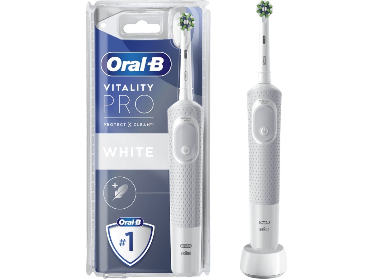Oral-B Vitality Pro genopladelig eltandbørste giver en klinisk dokumenteret bedre rengøring sammenlignet med en almindelig manuel tandbørste.
