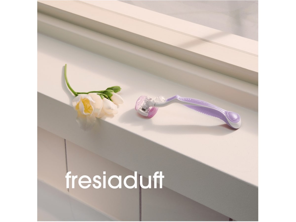 - HUDBESKYTTELSE: skraberens gelbarer frigiver et skønt skum med duft af freesia, som beskytter din hud mod rifter, sår og irritation