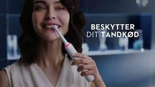 - Tandlægeinspireret rundt børstehoved omslutter hver tand for en dybdegående rengøring og er samtidig nænsomt mod tandkødet