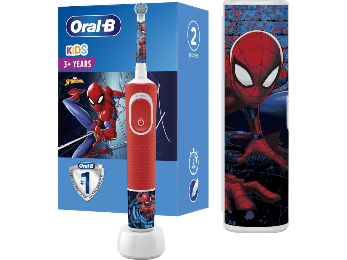 Oral-B Kids-eltandbørste fra 3+ giver børn underholdningen fra Marvel Spider-Man sammen med en skånsom, effektiv rengøring fra Oral-B-tandbørste, der anbefales af tandlæger.