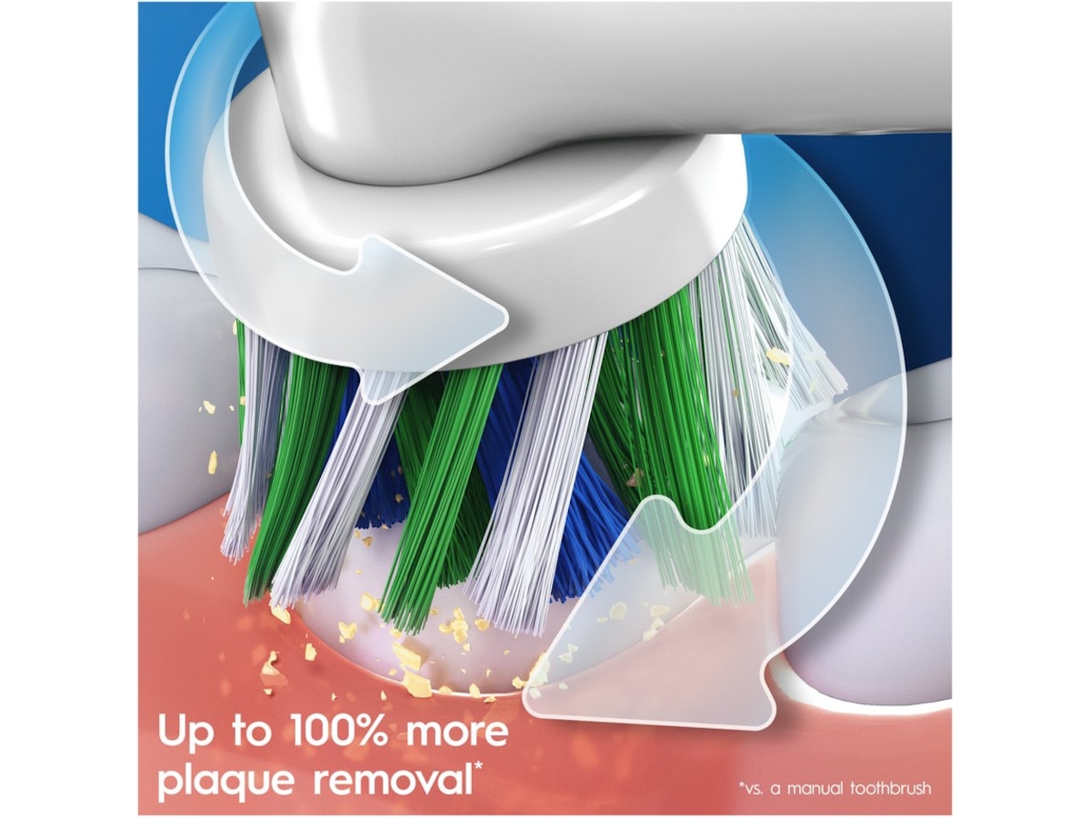 - Unik Oral-B’s 2D-rengøringsteknologi: oscillerer og roterer for op til 100 % mere fjernelse af plak vs. en manuel tandbørste