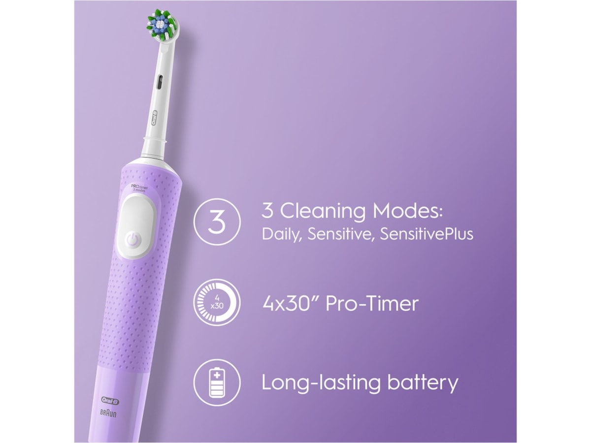 Tandbørsten har 3 børsteindstillinger: daglig rengøring, sensitiv og sensitiv plus for en utrolig nænsom oplevelse. En timer i håndtaget hjælper dig med at børste i de 2 minutter, der anbefales af tandlæger. Det bedste af det hele er, at den er fra Oral-B, det tandbørstemærke flest tandlæger i hele verden bruger.