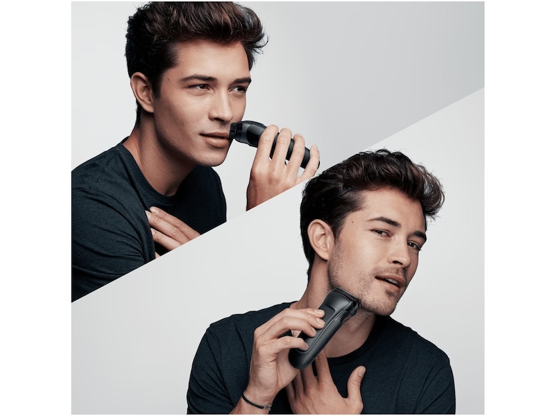 De tre trykfølsomme skæreelementer tilpasser sig perfekt efter ansigtets konturer og barberer i intuitive lige linjer. Braun Series 3-barbermaskiner til mænd er designet og udviklet i Tyskland og bygget til at holde.