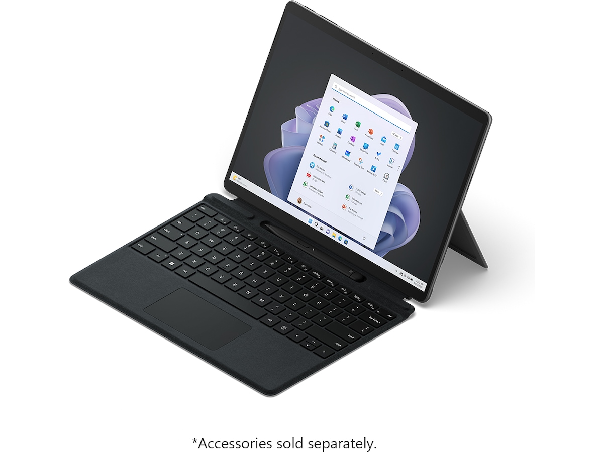 [3] De tilgængelige farver til tilbehør, Surface Pro Signature Keyboard (sælges separat) og Surface Pro 9 og Surface 9 med 5G] kan variere efter marked og konfiguration.