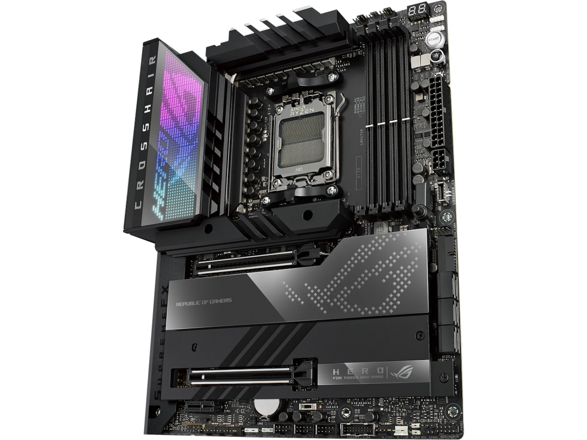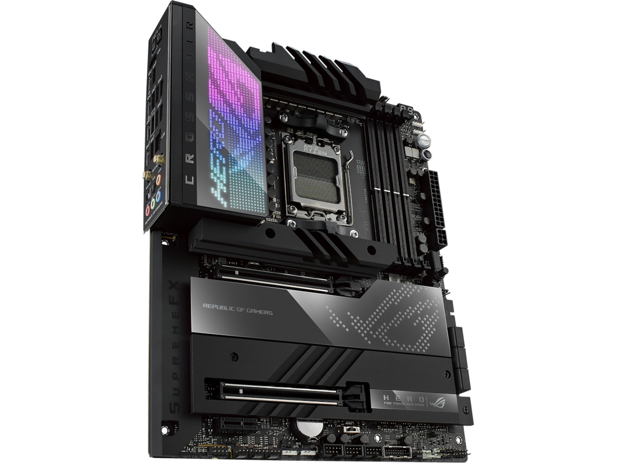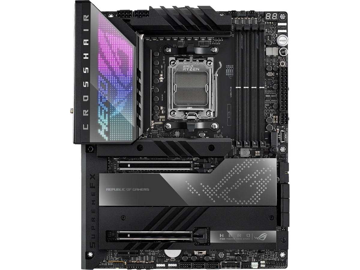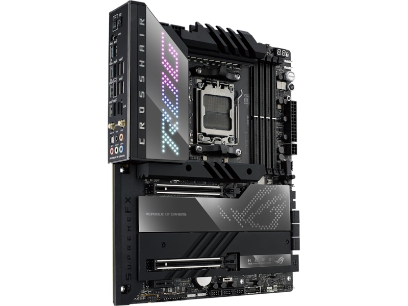 Vedvarende strømforsyning og robust termisk styring er det umiskendelige principper. Højhastighedsforbindelser, omfattende PCIE 5.0- og DDR5-understøttelse og Polymo-belysning tilføjer potente lag af tilpasningsmuligheder ovenpå. Og prikken over i'et er eksklusive hjælpeprogrammer og overclockingskontroller, der giver dig en unik mulighed for at udnytte ydelsen fra processorer i Ryzen 7000-serien. Definer dit AM5-build med ROG Crosshair X670E Hero.