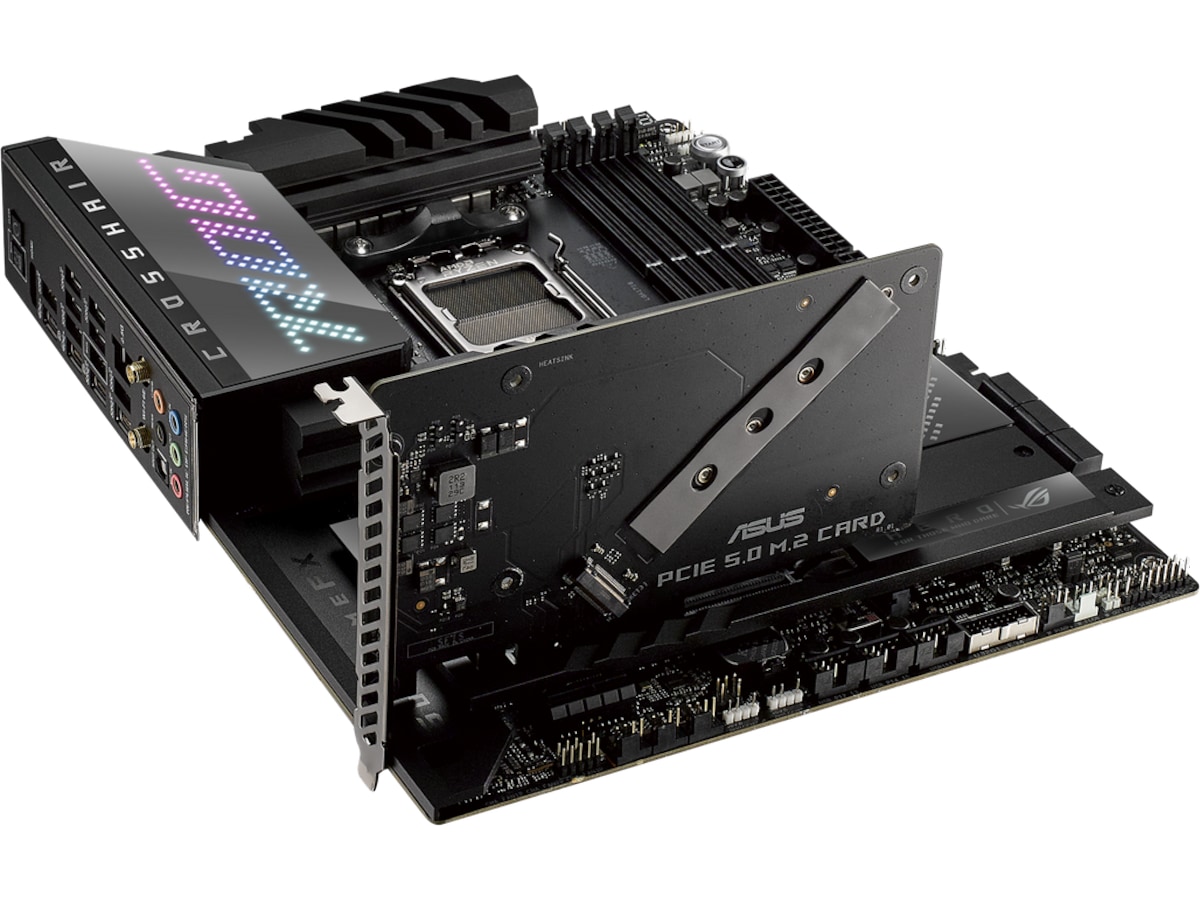 For at få endnu mere lagerplads har det medfølgende PCIe 5.0 M.2-kort en ekstra Gen 5-ready slot, og det har rigelig overflade til at aflede varmen fra et 22110-drev i fuld størrelse.