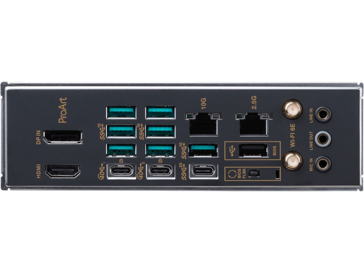Fordyb dig i dine kreationer med to USB4®-porte, der forbindes til alle dine indholdsskabende gadgets og muliggør op til 40 Gbps tovejs dataoverførsler. For yderligere at skubbe dit kreative arbejde med en 8K eller to 4K farvenøjagtige skærme, kan du tilslutte dit diskrete grafikkort til den indbyggede DisplayPort-in-port på bagsiden af I/O og dirigere videooutputtet via USB4®-porten.