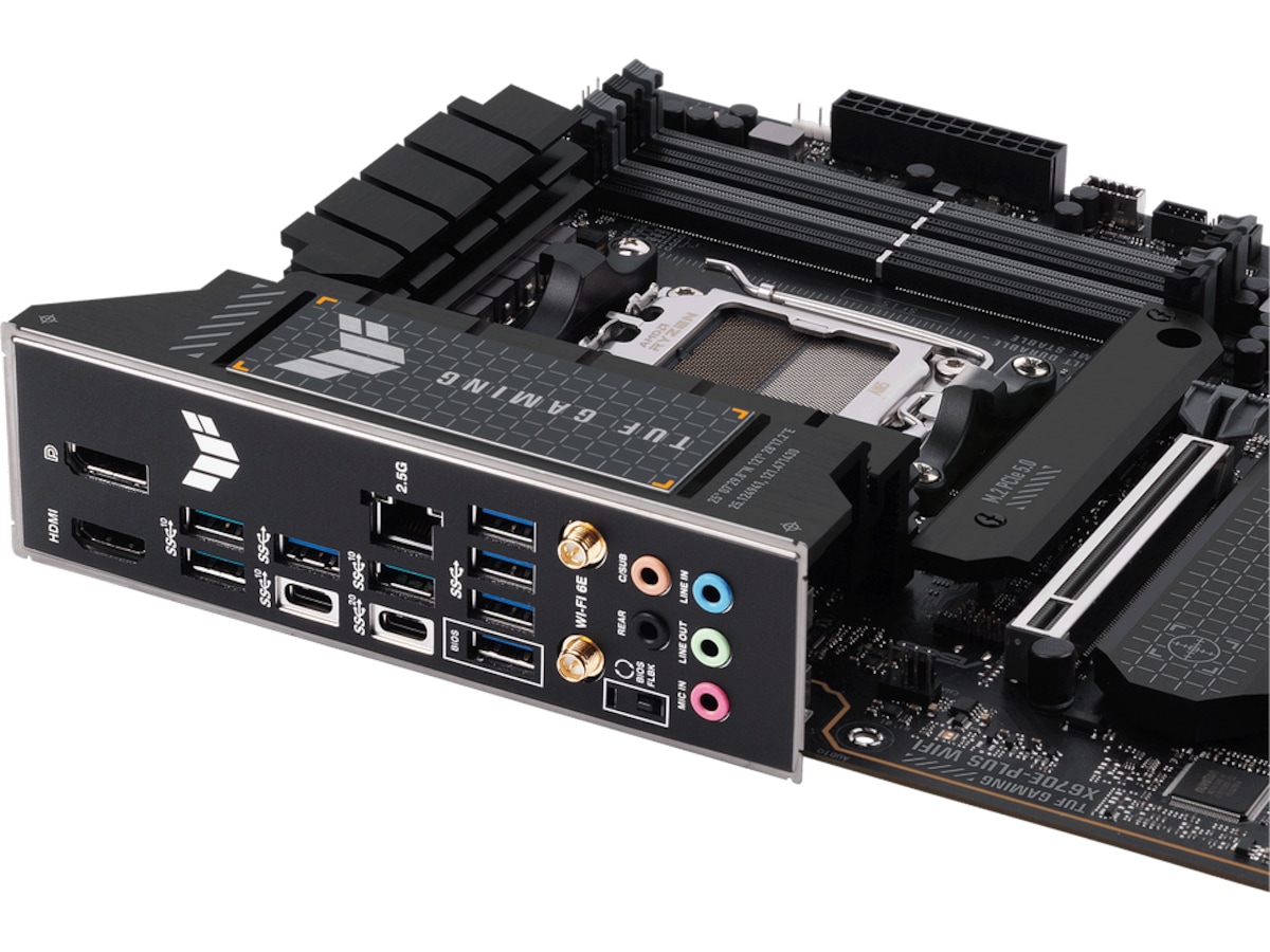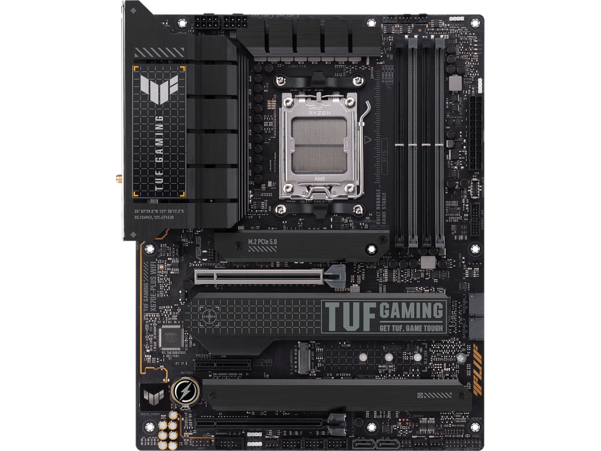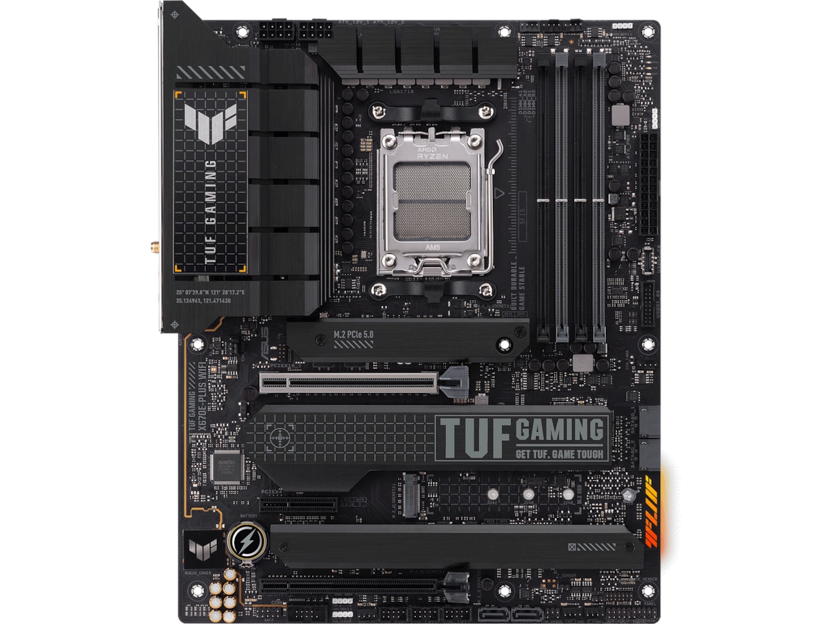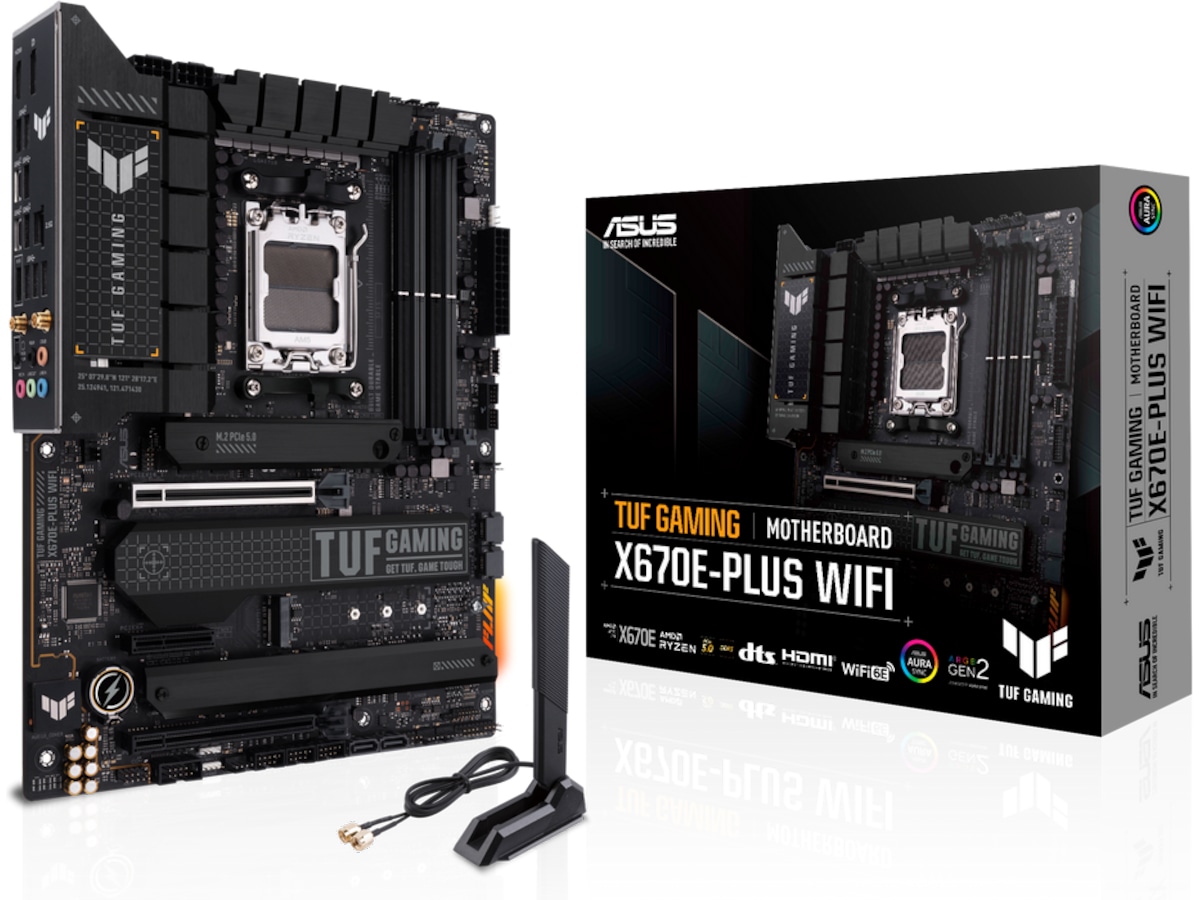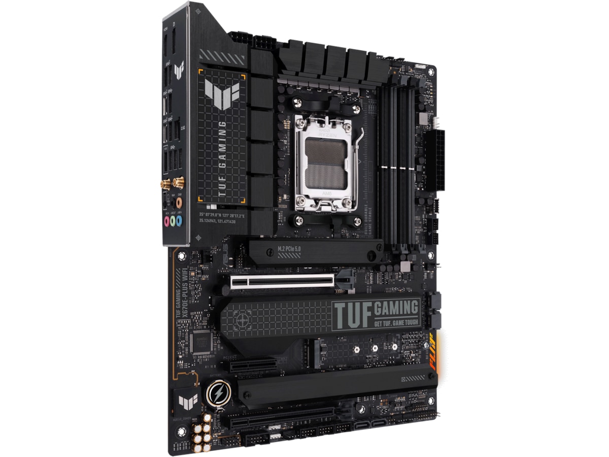 TUF-GAMING X670E-PLUS WIFI når nye højder for ydelsespotentiale med den nyeste version af PCI Express, mens et arsenal af USB-porte, der omfatter tre Type-C®-forbindelser, og Thunderbolt 4 udvider kompatibiliteten og båndbredden yderligere.