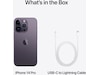 *iPhone 14 Pro blev testet under kontrollerede laboratorieforhold og har i henhold til IEC-standard 60529, en modstandsdygtighed over for spild, stænk og støv på IP68 (maksimal dybde på 6 meter i op til 30 minutter). Resistens over for stænk, vand og støv er ikke permanente tilstande. Holdbarheden kan blive nedsat på grund af normalt slid. Oplad ikke en våd iPhone. Brugervejledningen beskriver, hvordan man rengør og tørrer den. Garantien dækker ikke skader forårsaget af væske.