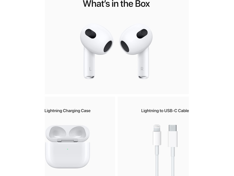 AirPods (3. gen.) har personlig rumtilpasset lyd, der placerer lyden omkring dig1, samt bedre batterilevetid.2 De er vand- og svedafvisende, og oplevelsen er simpelthen magisk.3