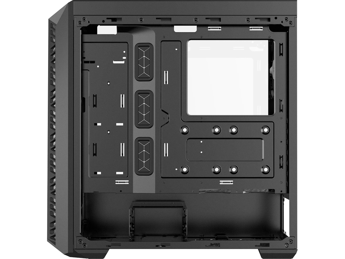 At vise din rig via et røget frontpanel er noget, du ikke vidste, at du havde brug for. DarkMirror-frontpanelet beriger kontrasten fra hardwarelighting og skaber en malerisk visning af de indre komponenter. For at afkøle spillesystemer, der er indbygget, er der mesh-ventilation på hele længden af frontpanelets sider, hvilket sikrer, at de tre inkluderede ARGB-fans bliver fodret med en betydelig mængde luft.