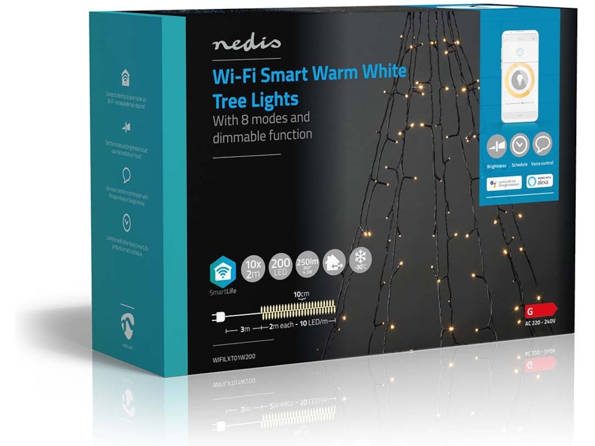 Smart Wi-Fi-lyskæden kan installeres uden en gateway og integreres direkte i dit trådløse netværk – dette forenkler installationen og sparer yderligere omkostninger. Betjen lysene ved hjælp af den gratis Nedis® SmartLife-app, hvor du kan oprette automatiserede funktioner baseret på tidsindstillede tidsplaner, solnedgang eller andre Nedis® SmartLife-produkter. I kombination med Google Home eller Amazon Alexa kan du endda give stemmekommandoer for at ændre træets mønstre.