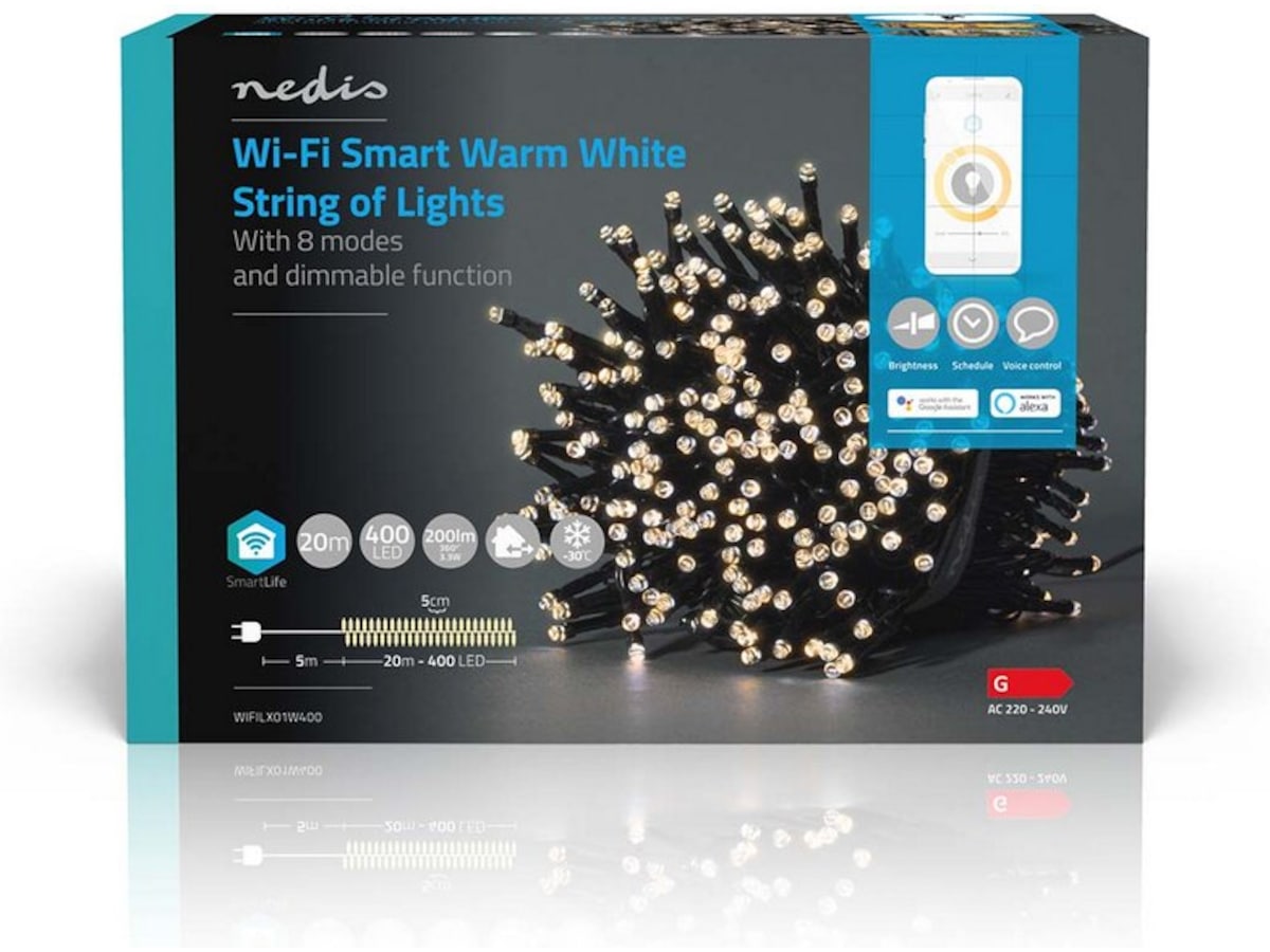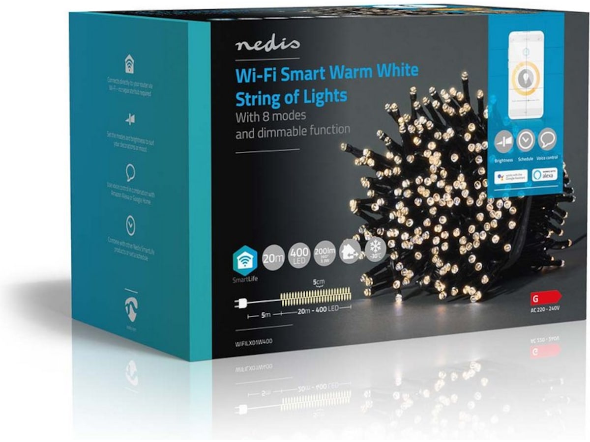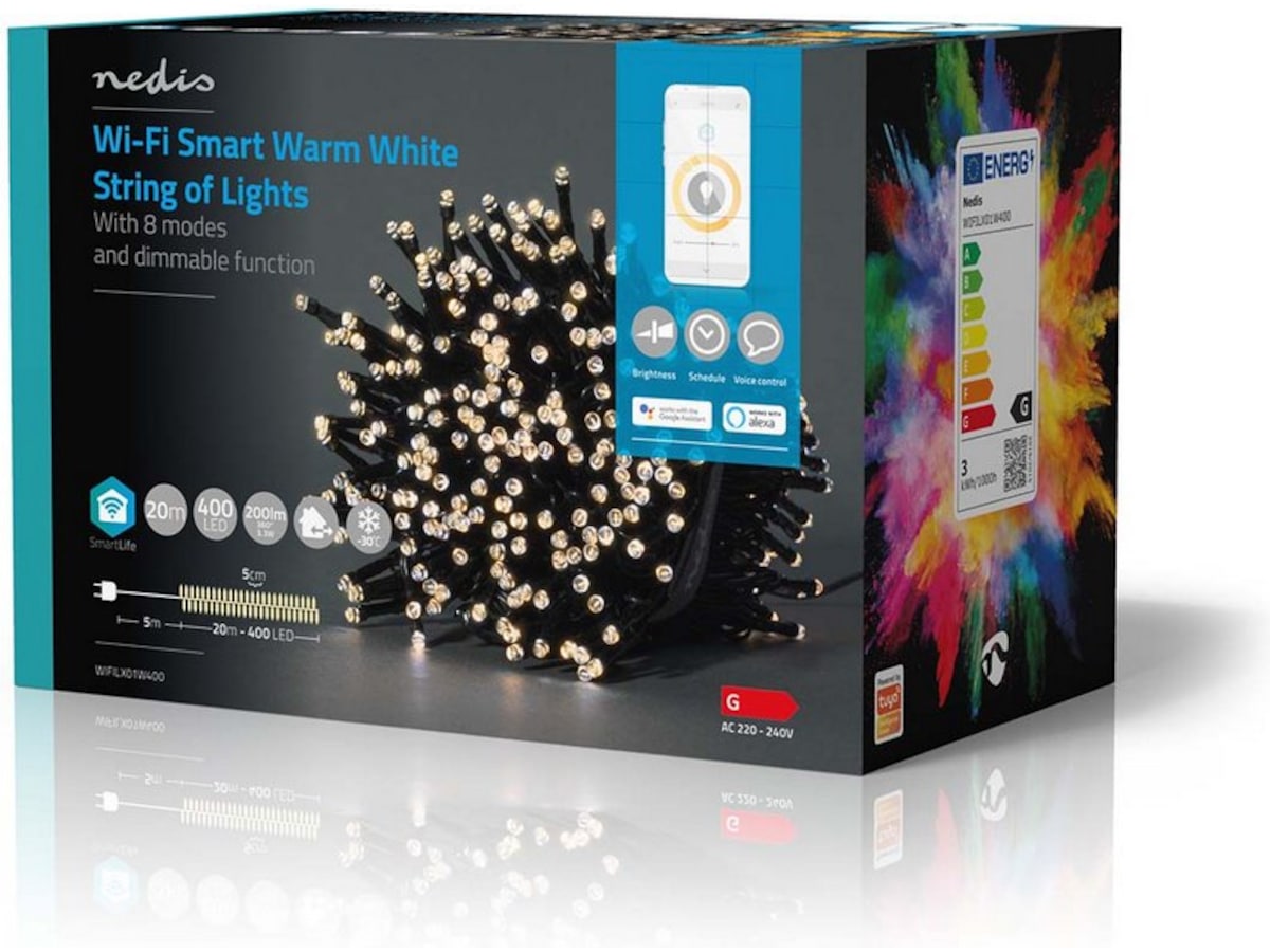 Wi-Fi-lyskæden kan installeres uden en gateway og integreres direkte i dit trådløse netværk – dette forenkler installationen og sparer yderligere omkostninger. Betjen lysene ved hjælp af den gratis Nedis® SmartLife-app, hvor du kan oprette automatiserede funktioner baseret på tidsindstillede tidsplaner, solnedgang eller andre Nedis® SmartLife-produkter. I kombination med Google Home eller Amazon Alexa kan du endda give stemmekommandoer for at ændre lyskædens mønstre.